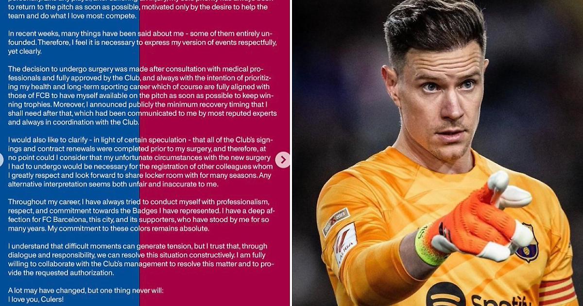 🚨🔥 «Любое альтернативное толкование кажется мне несправедливым и неточным». Марк-Андре тер Стеген сделал заявление в соцсетях