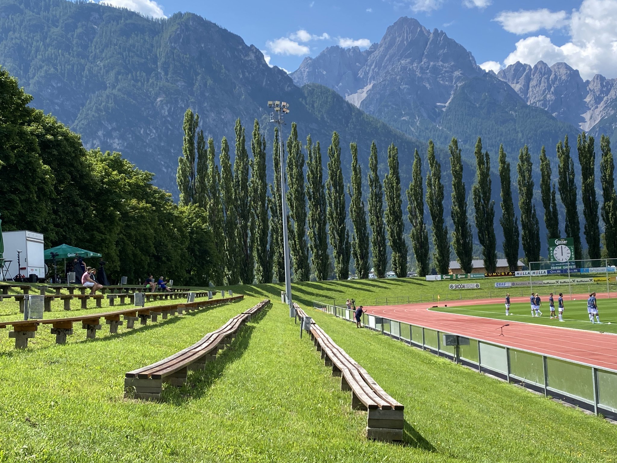 А вот летом здесь на «Стад де Гранжет» можно посмотреть футбик с потрясными видами на Бернские и Валезанские Альпы.