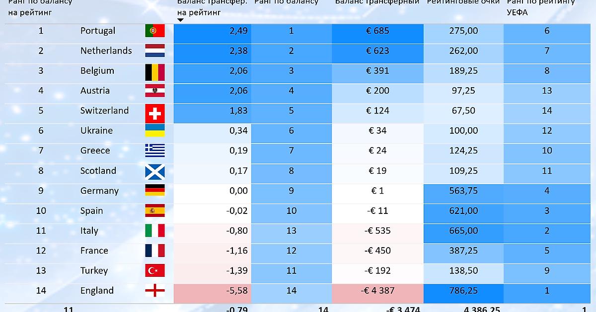 - Кто больше всех потерял и заработал на трансферах? Рейтинг ассоциаций за 5 лет