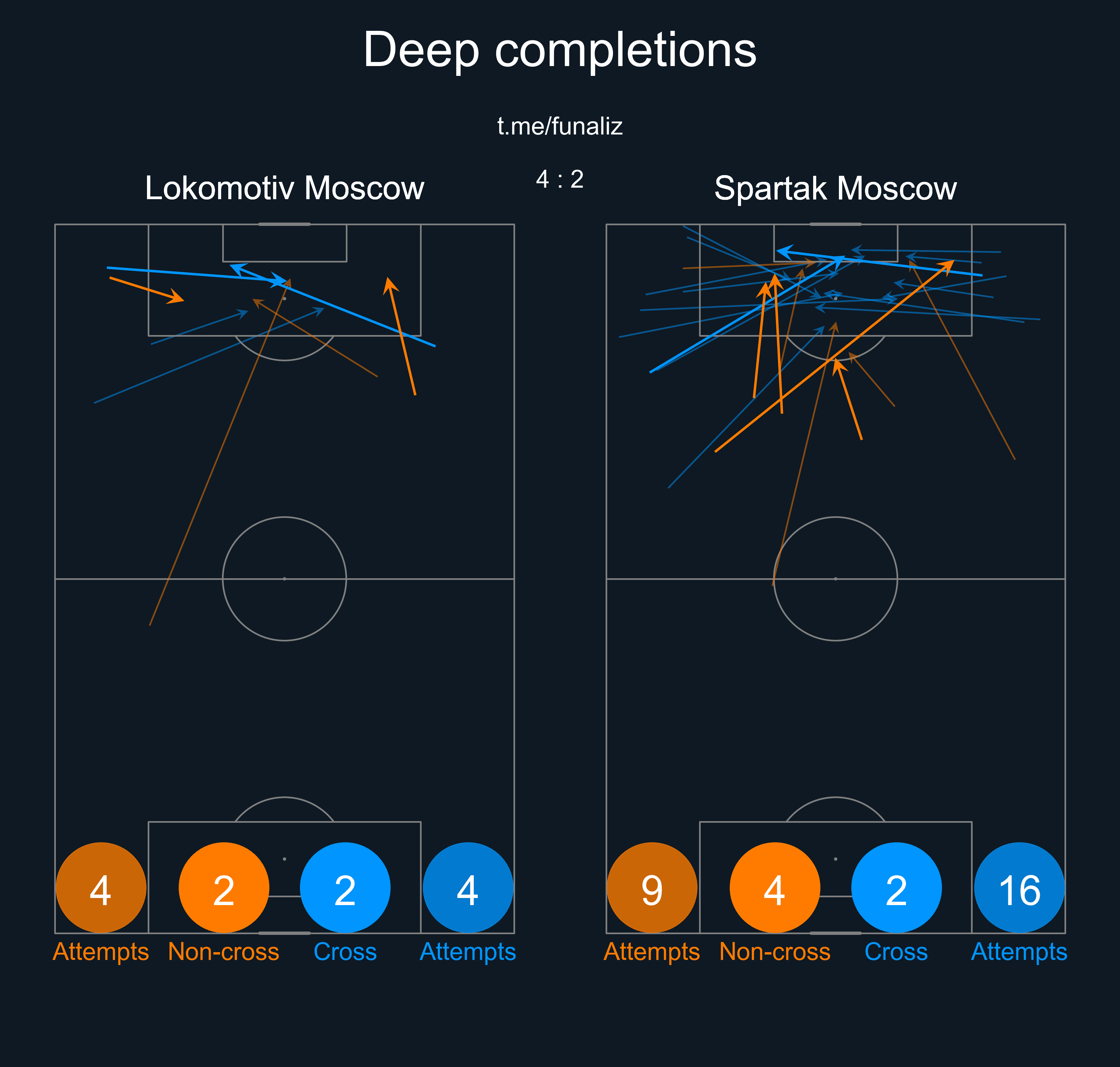 Не стоит забывать и о факторе «быстрого» гола во втором тайме. На 30-минутном отрезке между точным ударом Воробьева и пенальти «Спартак» пробил по воротам лишь раз. Гол немного «прибил» гостей. Не хватало того разнообразия, которое удавалось вносить в игру в атаке до перерыва, а также динамики, передач в касание в финальной трети. «Локомотив» опустился глубже (командно) и успевал реагировать на перемещения оппонентов. «Спартак» пытался взломать плотный блок передачами за спины защитникам, но это не позволяло действительно обострять игру с последующей доставкой мяча в штрафную.