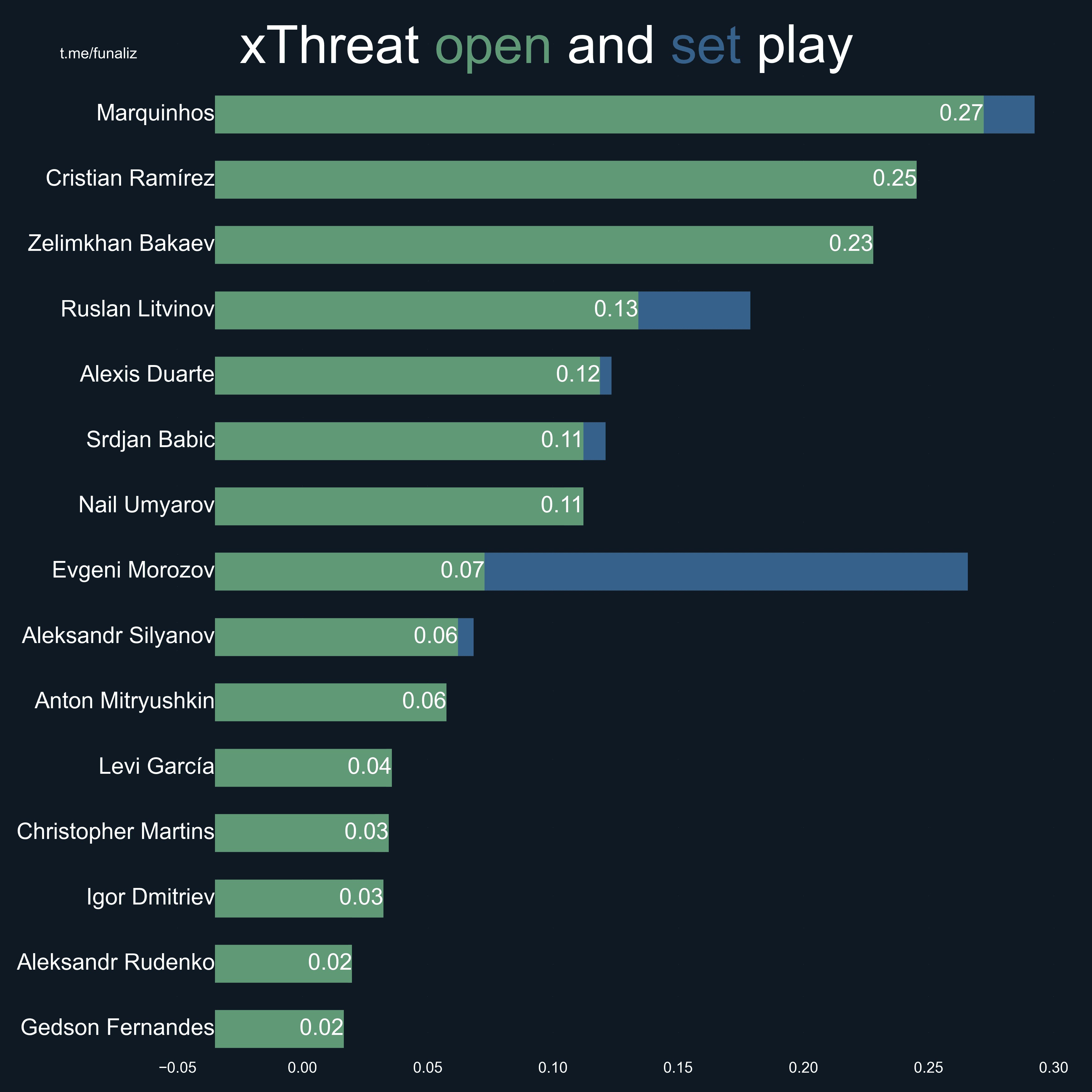 Впрочем, здесь вопрос к полузащитникам команды, прежде всего к Барко и Жедсону, хотя вряд ли справедливо требовать феерии от футболиста, который в команде менее двух недель. Маркиньос собрал на себе 92% от общего объема ожидаемых ассистов команды — фактически ничего с игры кроме момента Мартинса в первом тайме у «Спартака» создать не получилось. Не сработали и замены в центре нападения — Заболотный и Угальде проиграли все единоборства за мяч, которые вели. Хотя, стоит признаться, в перерыве выход «столба» смотрелся логично, учитывая характер игры команды. На практике выяснилось, что без Маркиньоса эффективность кроссов падает до нуля. И действительно: из 16 попыток доставить мяч в опасный радиус ворот Митрюшкина через навесы только два увенчались успехом, оба с участием Мартинса.
