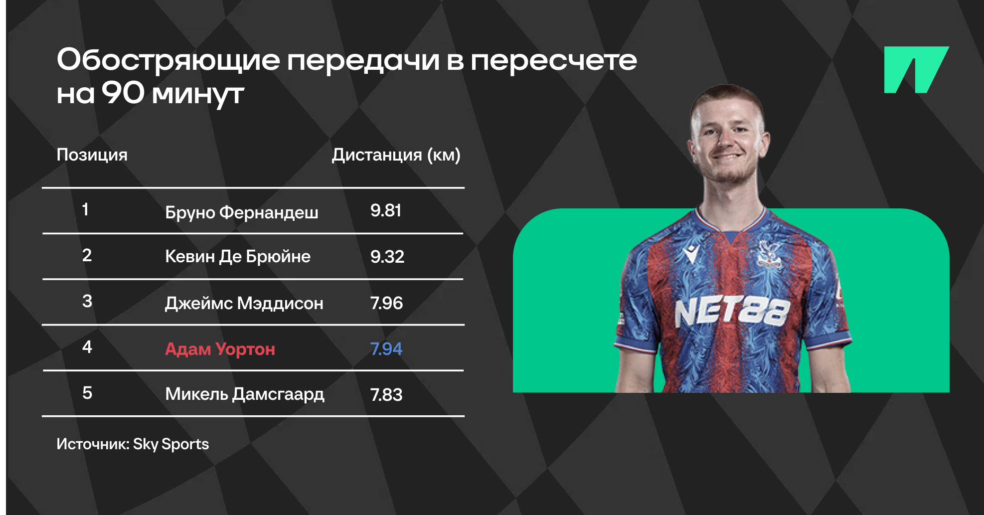 За Уортоном следят многие топ-клубы лиги, и не просто так. Игрок созидает из глубины настолько хорошо, что попадает в топ-5 игроков, отдающих обостряющие передачи в пересчете на 90 минут.