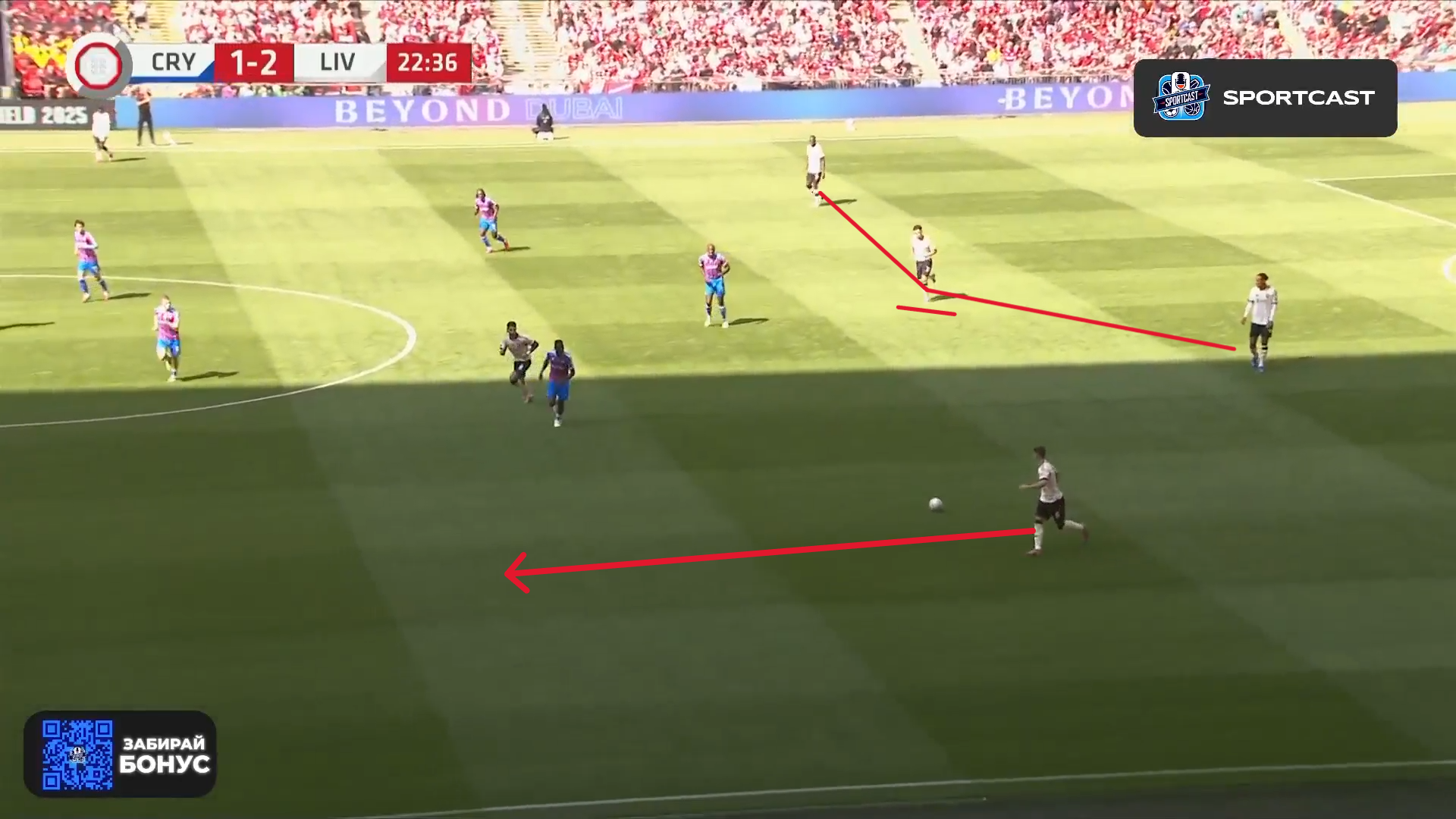 Самый ошеломительный пункт этого разбора проявился уже на самом старте матча — невероятное взаимопонимание нападающих «Ливерпуля». Буквально с первых секунд появилось ощущение, будто дуо Экитике-Виртц играют друг с другом уже много лет и на телепатическом уровне знают зоны забеганий друг друга.