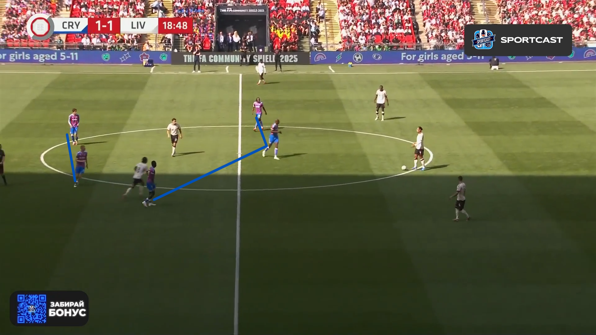 Первые минуты в исполнении «орлов» можно охарактеризовать одним эпизодом — розыгрышем с центра поля. Адам Уортон попытался выбить мяч в аут на чужую половину и сразу пойти в прессинг, как регулярно делает в своих матчах «ПСЖ». Но у «Пэлас» не получилось даже это, ведь Адам не смог перебросить всех игроков соперника и попал в Керкеза.