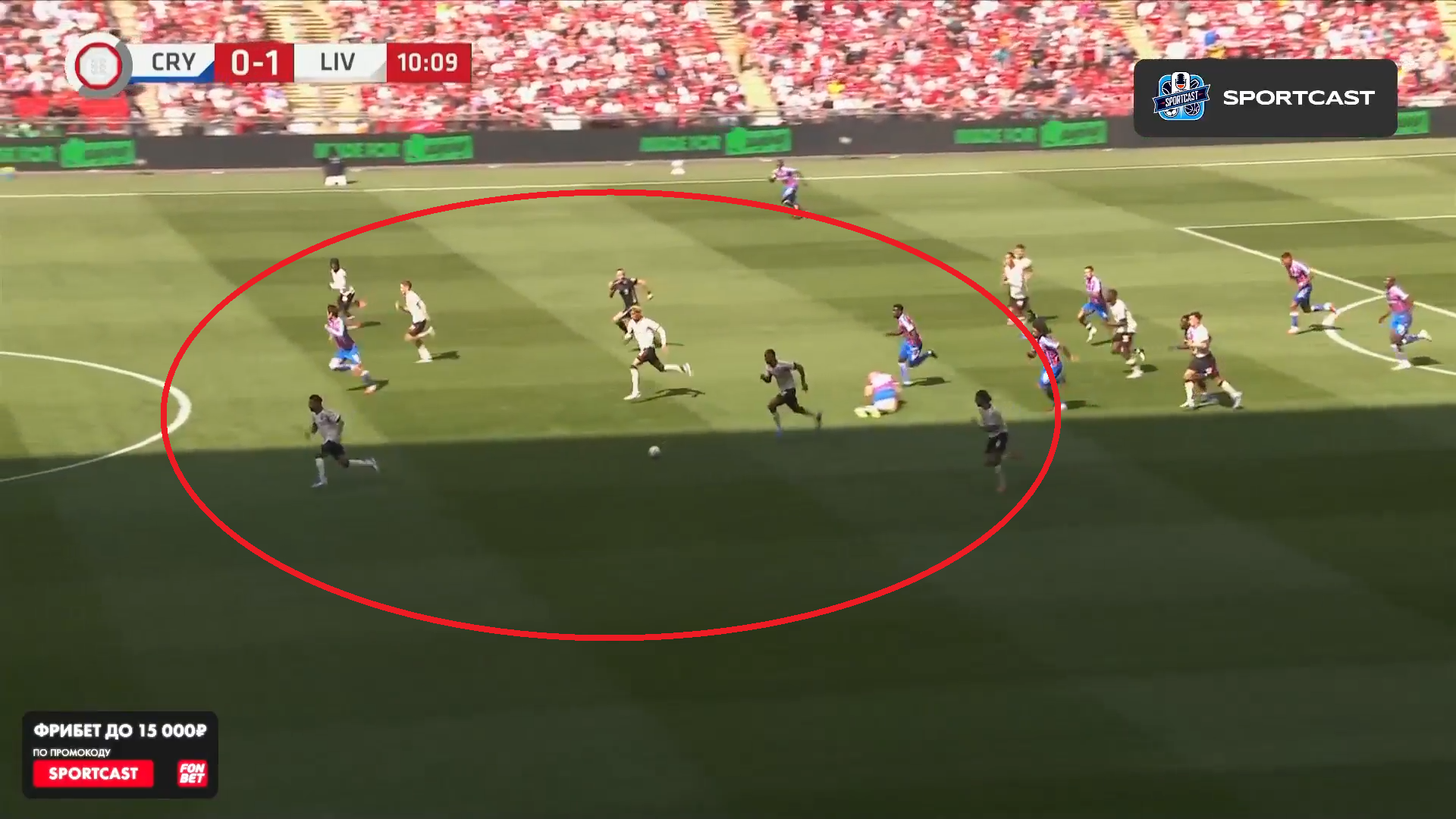 За 70 минут нахождения Экитике на поле «красные» трижды вернули мяч на чужой трети поля (это 7.3% от всех возвратов). В последние 20 минут, даже после того, как Сарр сравнял счет, «Ливерпуль» ни разу не отобрал мяч в финальной трети.
