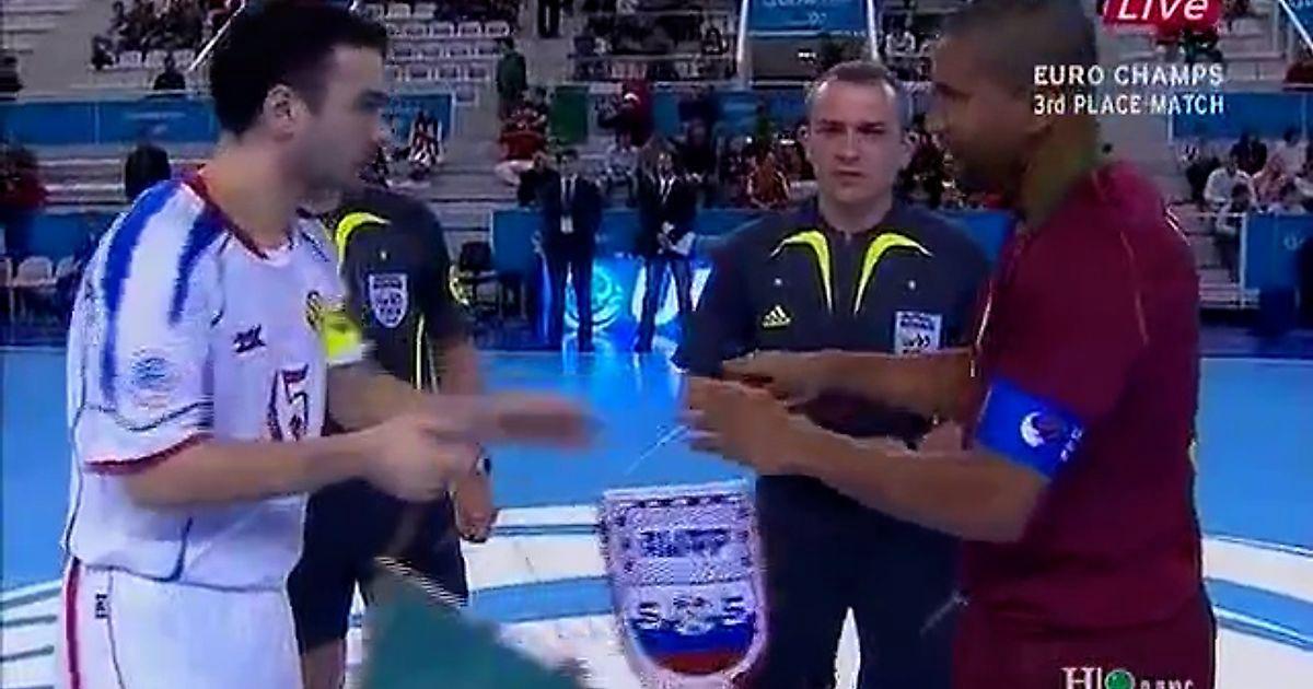 - Да хотя команда подобралась для более высокого результата. Тогда впервые в сборной появились Сирило, который вошёл в тройку лучших бомбардиров турнира, Павел Кобзарь, Пеле Жуниор, Павел Чистополов. Групповой турнир мы закончили на втором месте, Проиграв испанцам. В полуфинале встретились со старыми знакомыми сборной Италии. На этот раз в финал вышли наши соперники. Как раз был апогей итальянской сборной нулевых. Да в финале сильнее была испанская команда. Но натурализированные бразильцы остаются бразильцами. Тогда один из них Фолья, мощно провёл весь турнир.