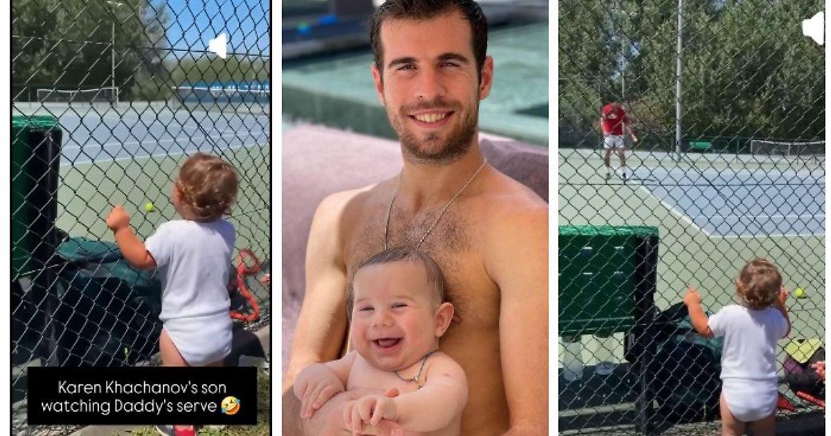Милота дня😍: сын Карена Хачанова с одобрением следит за тренировками отца