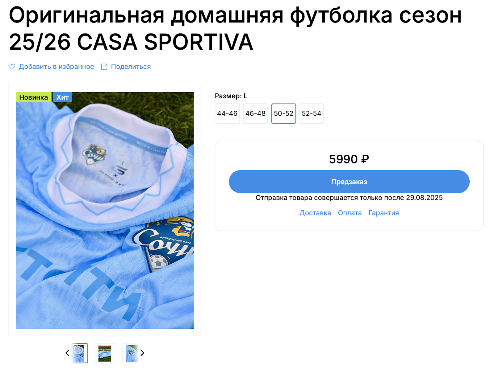 В интернет-магазине «Сочи» выставлена форма от нового экипировщика Casa Sportiva, но купить ее еще пару дней назад было нельзя.