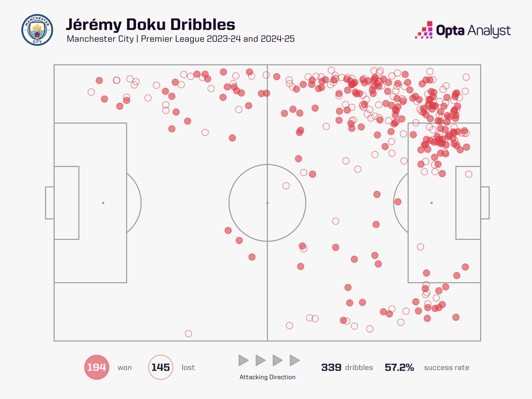 В сезоне 2024/25 основными вариантами на флангах у Пепа были Савиньо, Жереми Доку, Фил Фоден и Джек Грилиш, в то время как Омар Мармуш, присоединившийся в январе, чередовал различные позиции. Однако первые четверо в сумме забили всего 12 голов в АПЛ, причем 7 из них — на счету Фодена, для которого этот сезон, вероятно, стал самым слабым в карьере.
