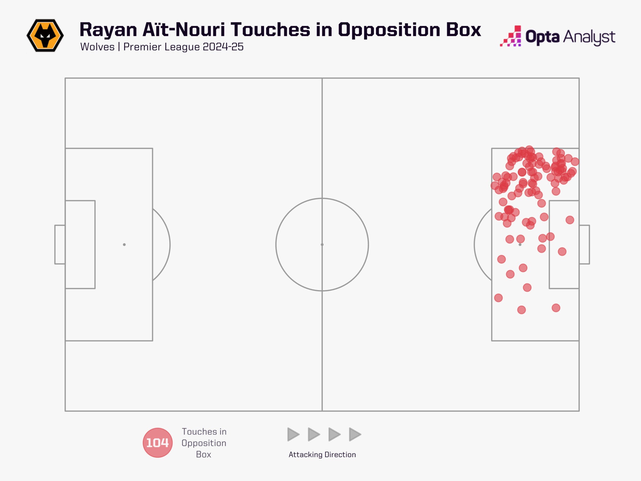 - Только Даниэль Муньос (112) совершил больше касаний в чужой штрафной, чем Аит-Нури (104)