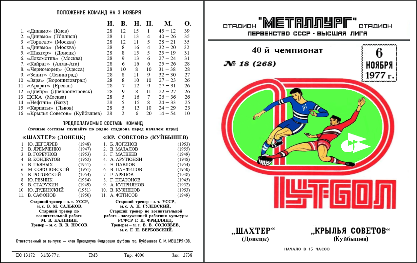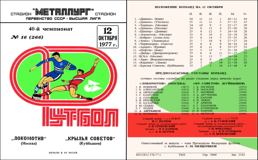 ЗБС впечатления от футбола «Крылья Советов» 1977 (Программки года)