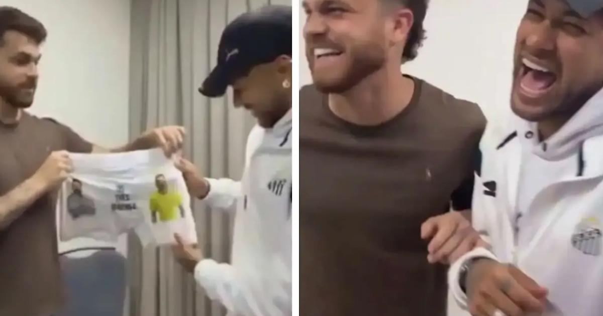 Нападающему «Сантоса» подарили трусы с изображением Лионеля Месси, самого Неймара и надписью «большое трио». Трио, так как между фото Месси и Неймар находится половой орган.