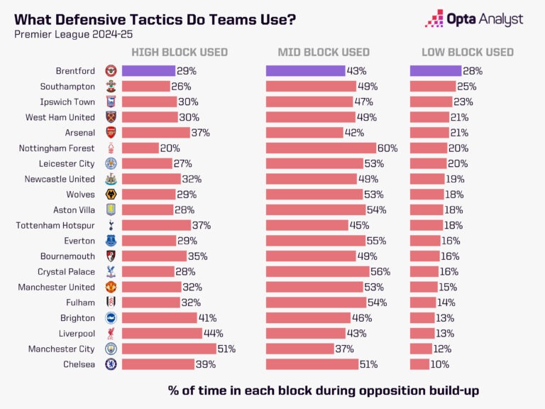 Найти этот баланс — главный вызов для Франка. В «Брентфорде» ему это удавалось: команда была надёжна в защите, но атаковала ярко и быстро. В прошлом сезоне они чаще других играли от обороны (28% времени в низком блоке), но при этом уступали по забитым голам лишь тройке лидеров и «Ньюкаслу».