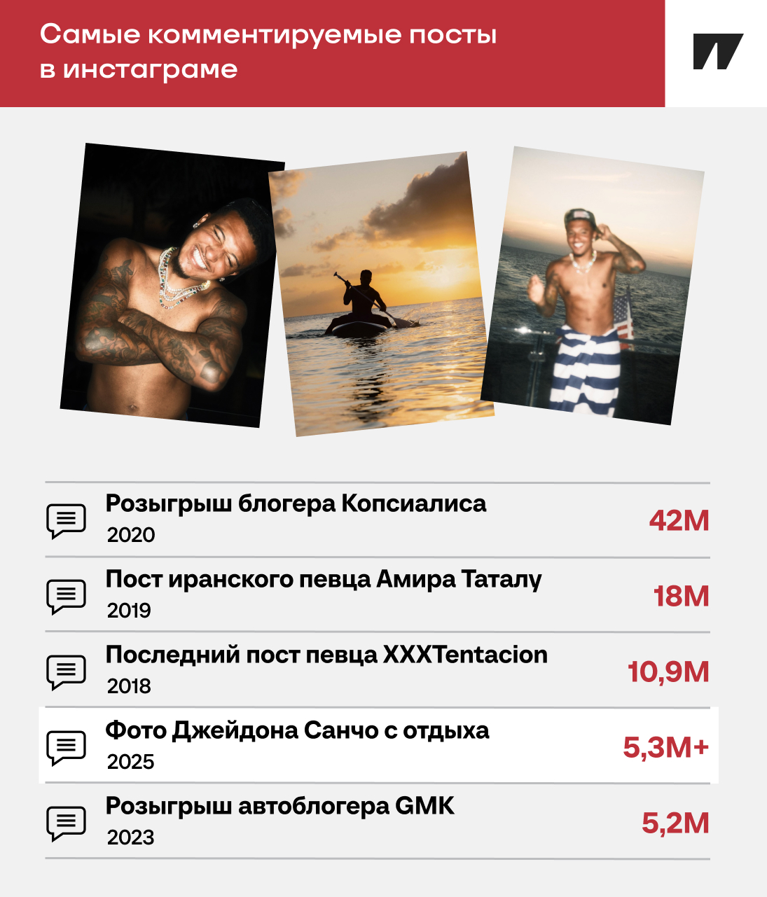 И фанаты хлынули на страницу Джейдона. Причем у него в инстаграме не было постов с 24 июля – они пошли просто под последний. Там фото с отдыха на островах Теркс и Кайкос в Карибском море. И своей активностью подняли пост на четвертое место в истории инстаграма по числу комментов.