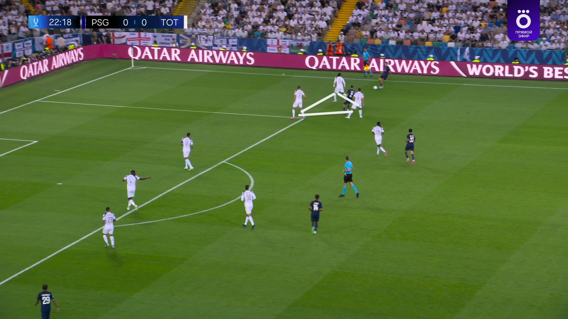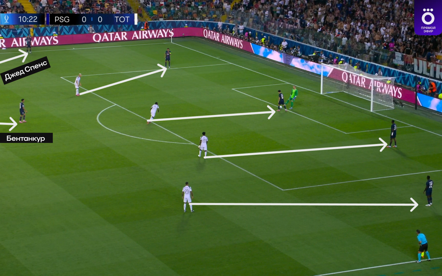 Если мяч все-таки доходил до опасных зон на трети «Тоттенхэма», то почти всегда через правый фланг. Через него у «Парижа» шло ровно 50% атак, и к такому напору оборона «шпор» была готова.
