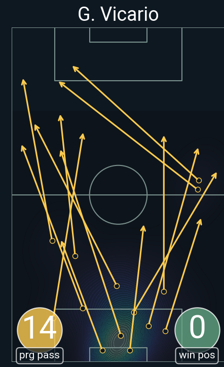 Дошло до абсурда: Гульельмо стал лидером команды по xT (0,22) и продвигающим передачам (14). Карта этих передач просто взрывает мозг.