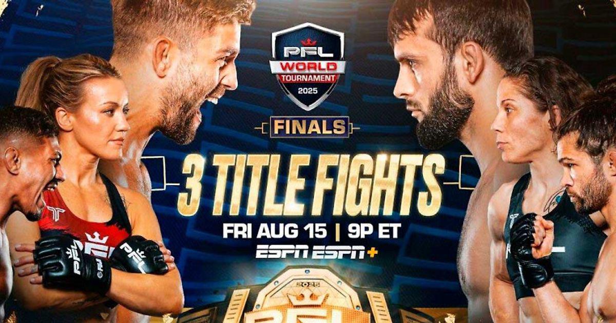 PFL привозит финалы Мирового турнира в Шарлотт: в ночь на субботу, 16 августа (по Москве), на арене Bojangles Coliseum разыграют пояса в лёгком весе, женском наилегчайшем и в бантамвейте. Турнир PFL начнётся в 01:00 МСК, предварительный кард — 01:30 МСК, мейн-кард — 04:00 МСК. В России турнир заявлен к показу эксклюзивно на Okko Sport.
