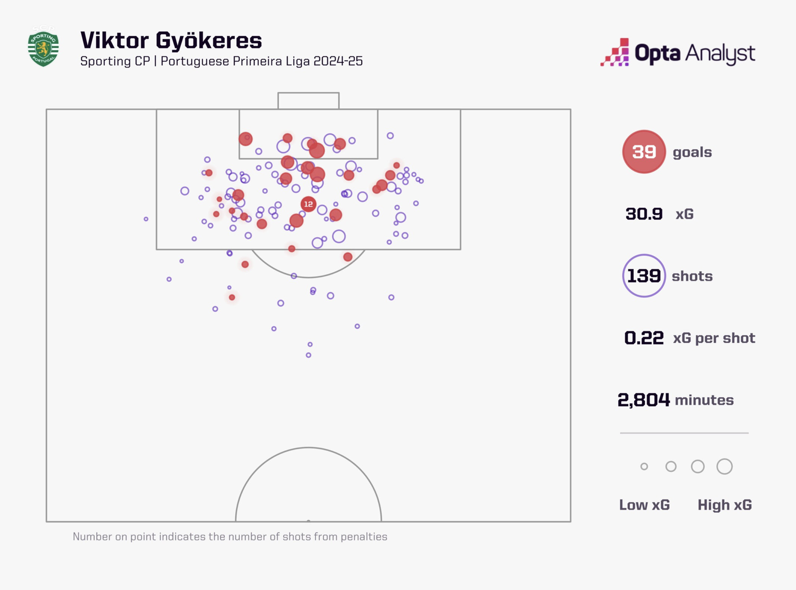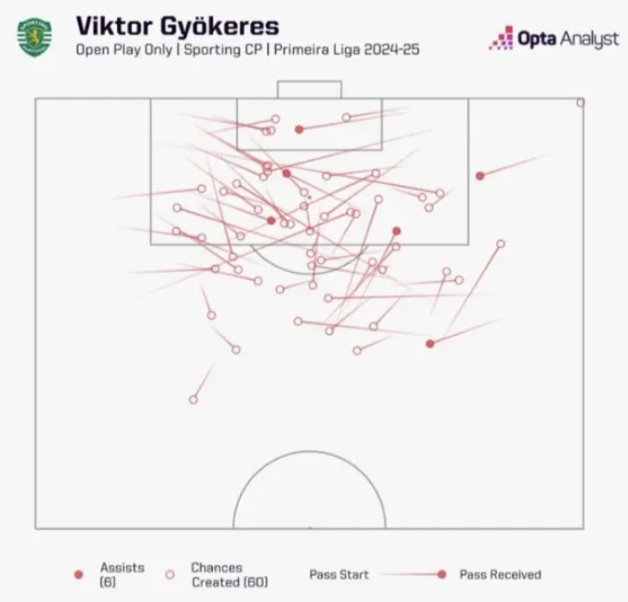 Начнём с того, кто он вообще такой. Швед, 26 лет, воспитанник «Броммапойкарны», который успел пройтись по Чемпионшипу и молодёжке «Брайтона». Пробился через "Ковентри", где показал не только цифры, но и характер — и оттуда пошёл на трамплин в Спортинг. Уже в Лиссабоне Дьокереш стал машиной: 54 гола в 52 матчах, лидер по ударам, лучший бомбардир лиги и один из лучших по участию в голевых эпизодах в Европе. Убедительно? Не совсем.