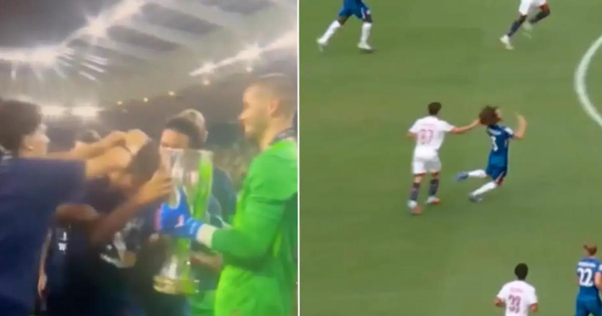 Игроки «ПСЖ» пошутили над Жоау Невешем, дергая его за волосы во время празднования победы в Суперкубке УЕФА.