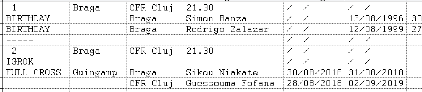 1. Об именинниках в текущих матчах(+\- 3 дня к дате матча)