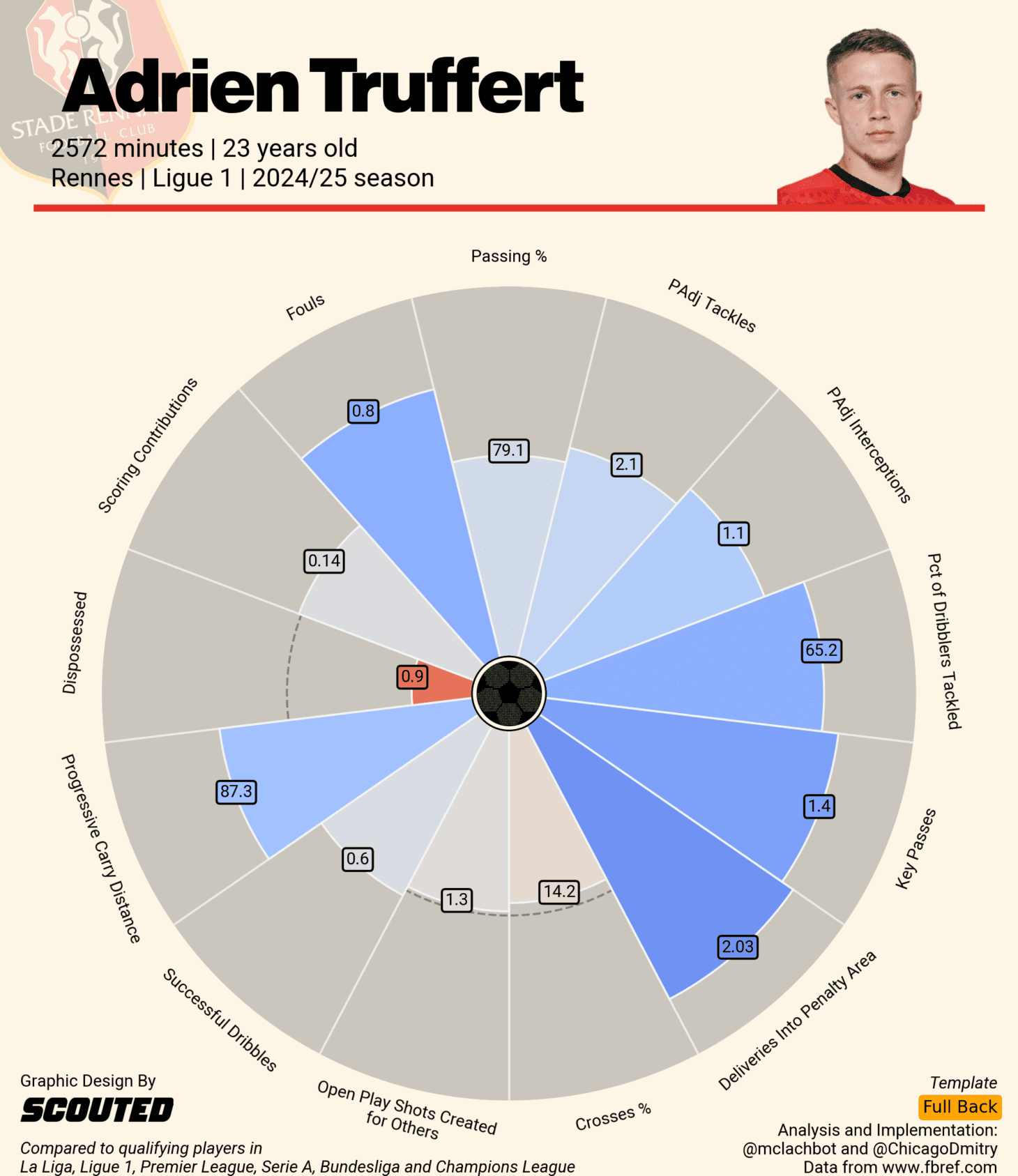 Да, новички чуть старше и опытнее тех защитников, которые покинули «Борнмут» летом. Трюффер и Диаките сыграли по пять сезонов в Лиге 1, тогда как для того же Хейсена предыдущая кампания была первой полноценной в карьере. Трюффер достаточно неплохо способен тащить мяч по флангу, по объему создаваемых моментов в целом выступал на одном уровне с Керкезом с поправкой на лигу и уровень самого «Ренна». Левый защитник важен для Ираолы, поскольку «Борнмут» едва ли не чаще всех в чемпионате атакует через этот фланг (тут стоит выделить и центрального защитника Сенеси) — а Керкез был единственным, кто сыграл все 38 матчей команды в АПЛ.