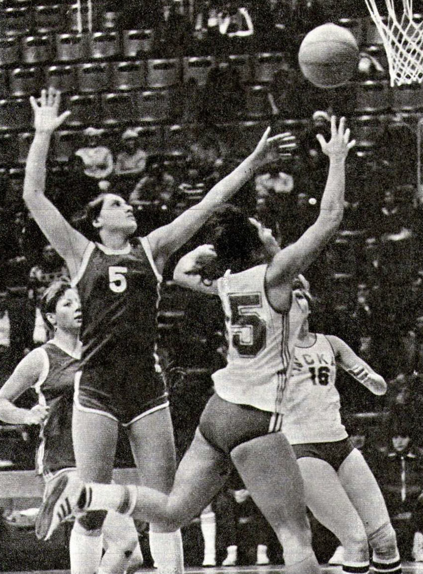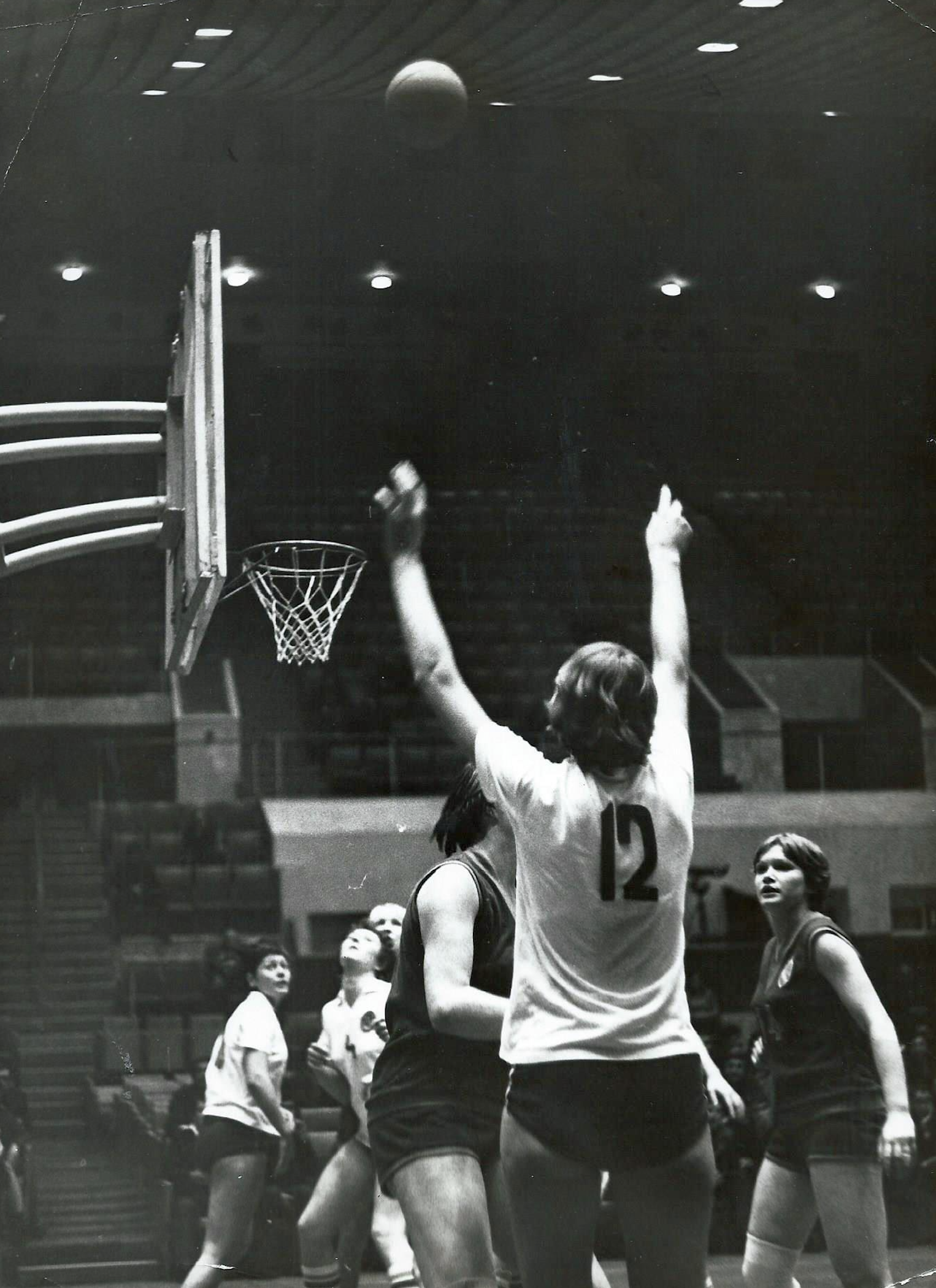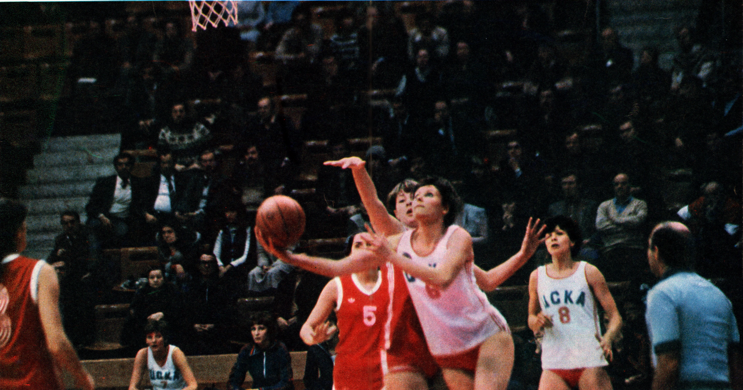 1986. Матч LIII чемпионата СССР ЦСКА – «Спартак» (Московская обл.) Сложный бросок в исполнении Олеси Барель