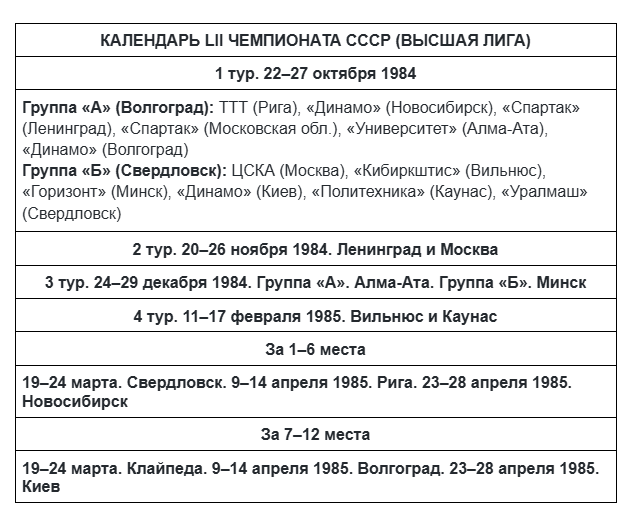 LII чемпионат СССР. Высшая лига. Предварительные игры. 22 октября 1984 – 17 февраля 1985