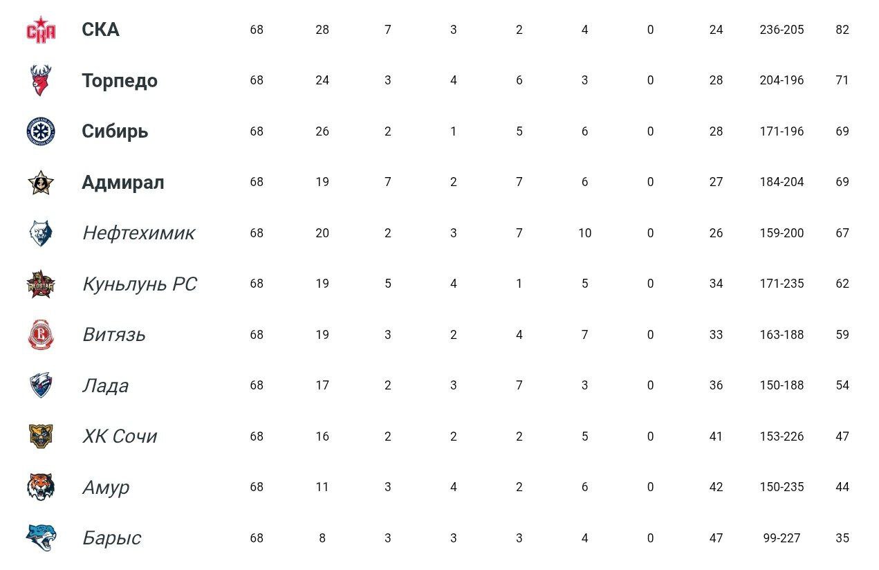 Нижняя часть общей таблицы в регулярке-2024/25 выглядела так:
