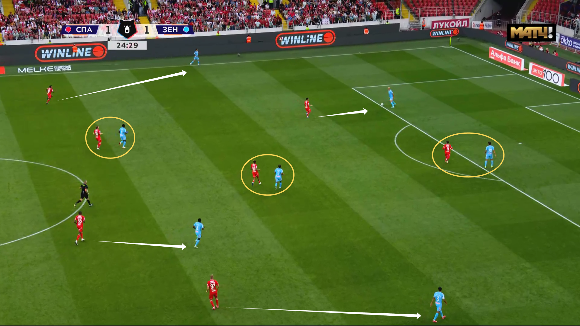 Сразу важно сказать, что «Спартак» и «Зенит» не являются командами, которые прямо строят всю свою игру вокруг персонального прессинга (как, например, делают многие в Италии). Просто зачастую в игре без мяча тренеры этих команд прибегают к использованию персональных ориентировок.