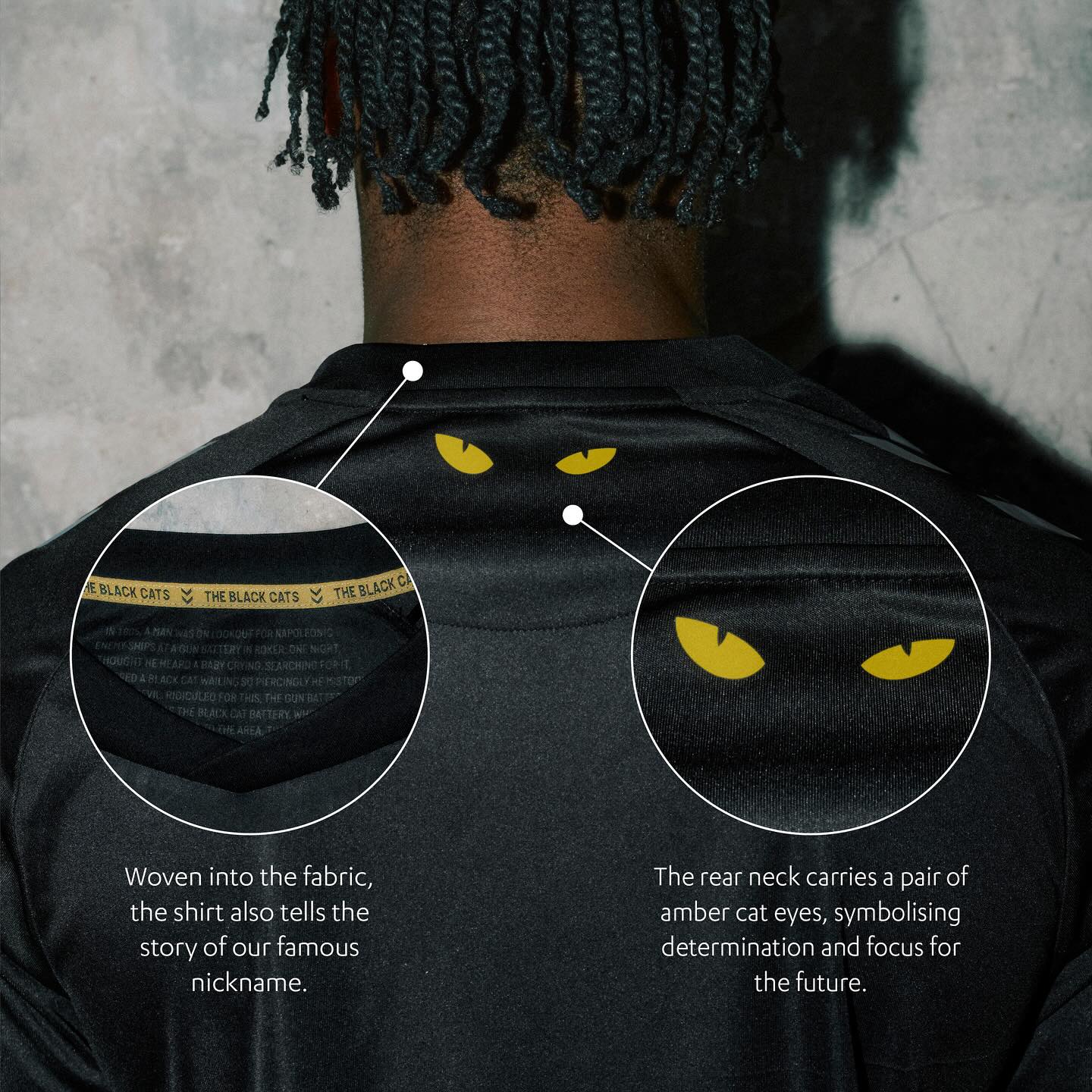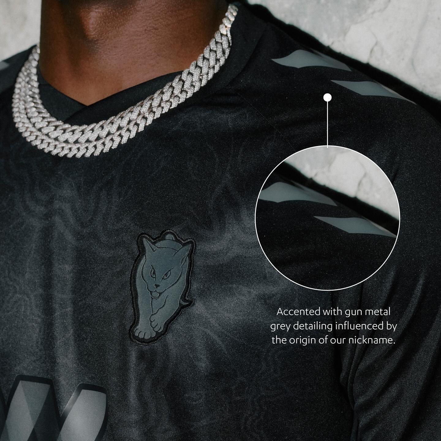 Футболка получила темный паттерн из 11 стилизованных котов – символ 11 игроков на поле. Акценты цвета оружейного металла вдохновлены историей происхождения прозвища (об этом ниже).