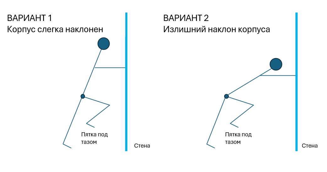 Попробуйте сделать эксперимент, подойдите к стенке и упритесь в нее как на картинке ниже и попробуйте в двух вариантах как можно быстрее поднести колено вперед, чтобы пятка была под тазом и сравните в какой позиции получается легче и быстрее. Если у вас нет анатомических особенностей, то во втором варианте с заваленными плечами вперед сделать это будет гораздо тяжелей.