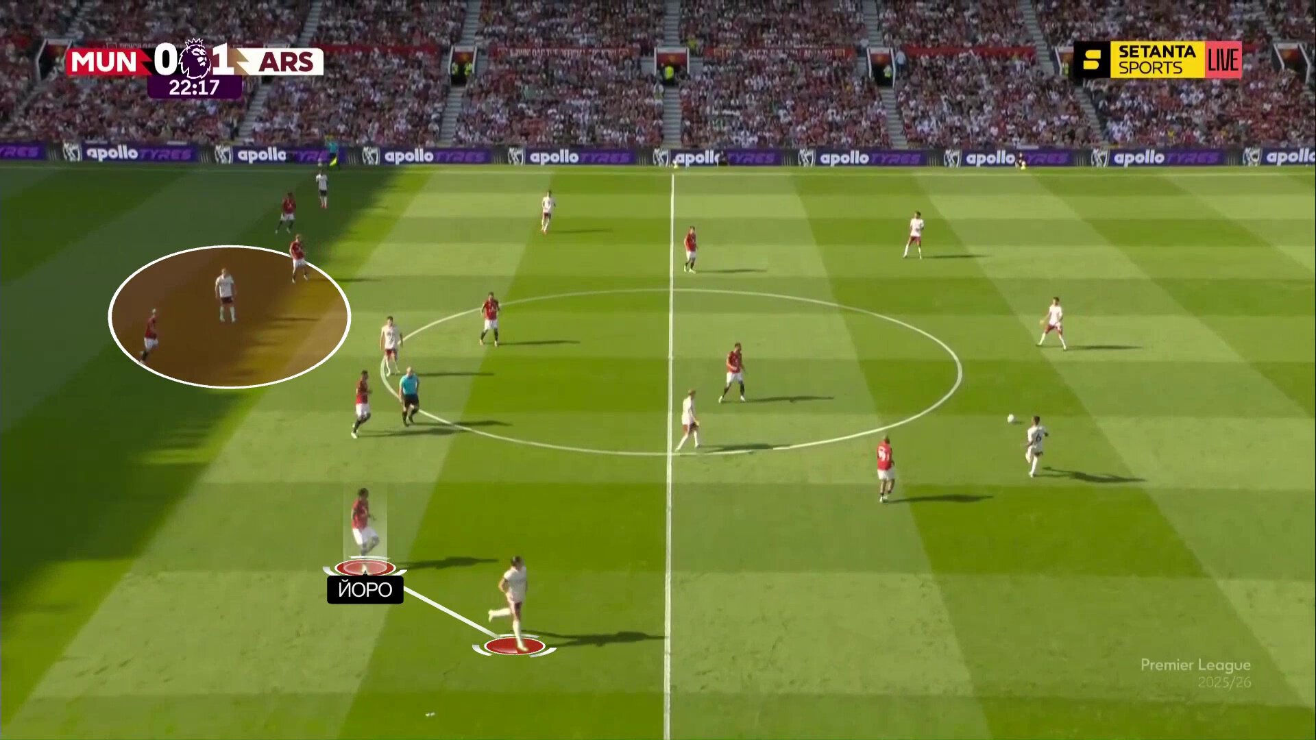 По ходу прошлого сезона Аморим отмечал, что пока команде комфортно проводить топ-матчи только в режиме игры вторым номером. Объяснял, что такая манера удобна неповоротливым Маттейсу де Лигту и Харри Магуайру, а также постаревшему, но все еще важному Каземиро. Очные матчи с «Арсеналом» отражали подход. В кубковой игре даже до удаления Диогу Далота было 37% владения (к концу упало до 29%). В игре чемпионата «МЮ» остановился на 32%.