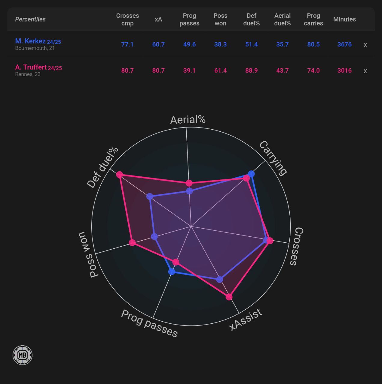 Керкез полюбился фанатам неспроста, заменить его сложно. Однако трансфер Трюффе за небольшие деньги на бумаге выглядит шикарно. Француз универсален (играл и ЛЗ, и левого вингбэка), очень хорош на мяче и в кроссах. Также, он был капитаном «Ренна» в всего лишь 23 года — хороший знак.