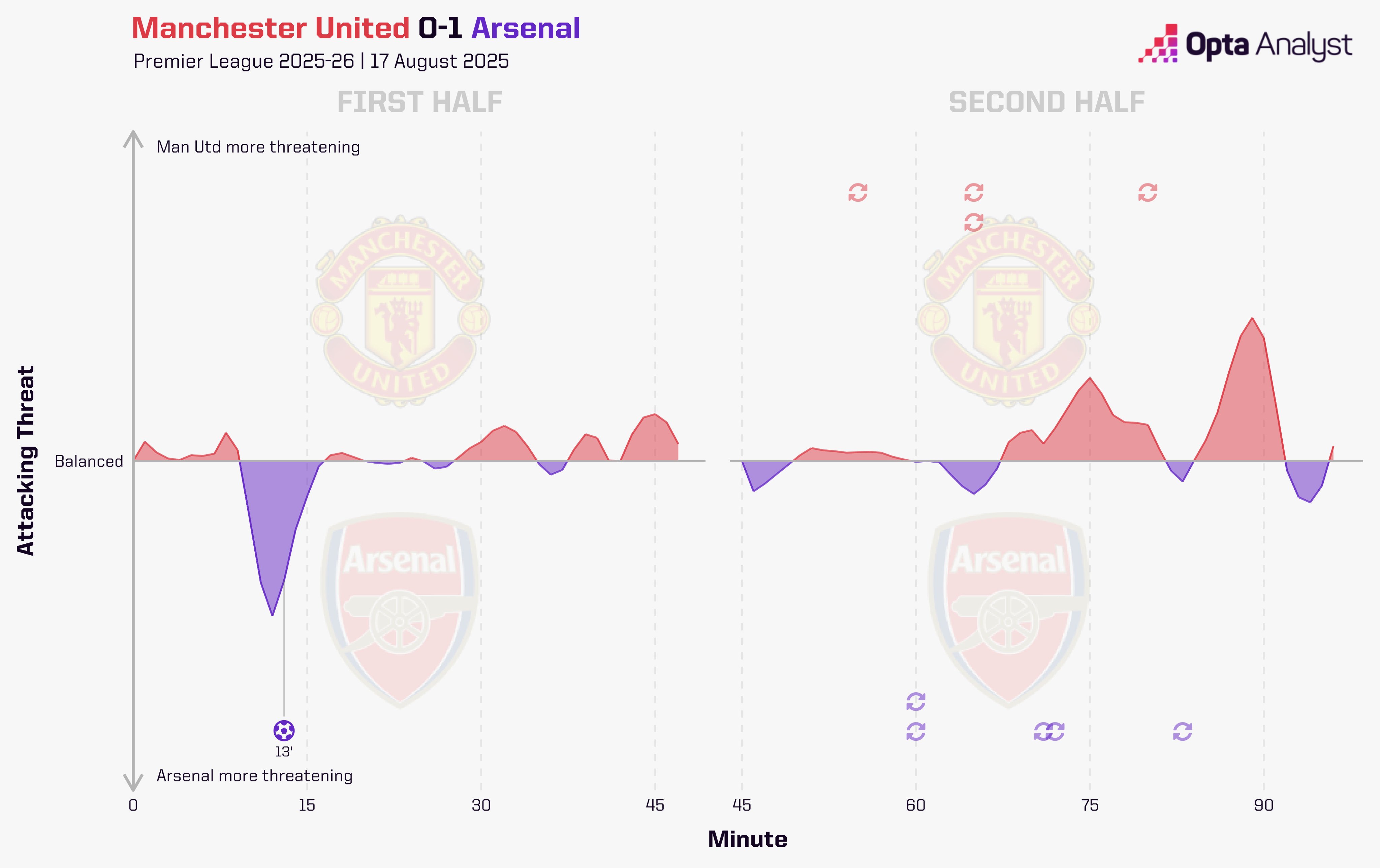 После перерыва хозяева еще больше стали владеть мячом, показывая данную статистику во втором тайме до 65%. И это владение было действительно опасным. Потенциально. Потому что несмотря на всю остроту в последней трети - до опасного удара редко доходило у «МЮ».