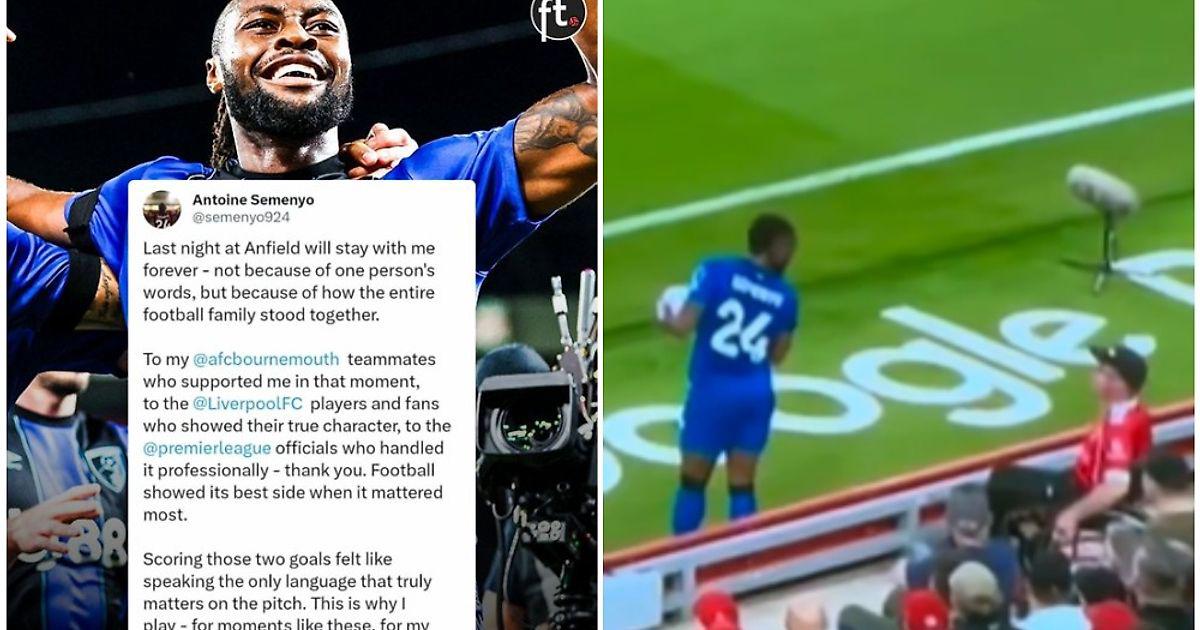 «Прошлая ночь на стадионе «Энфилд» навсегда останется в моей памяти – не из-за слов одного человека, а из-за того, как сплотилась вся футбольная семья сплотилась», − отреагировал на инцидент после игры в социальных сетях Энтойн Семеньо.