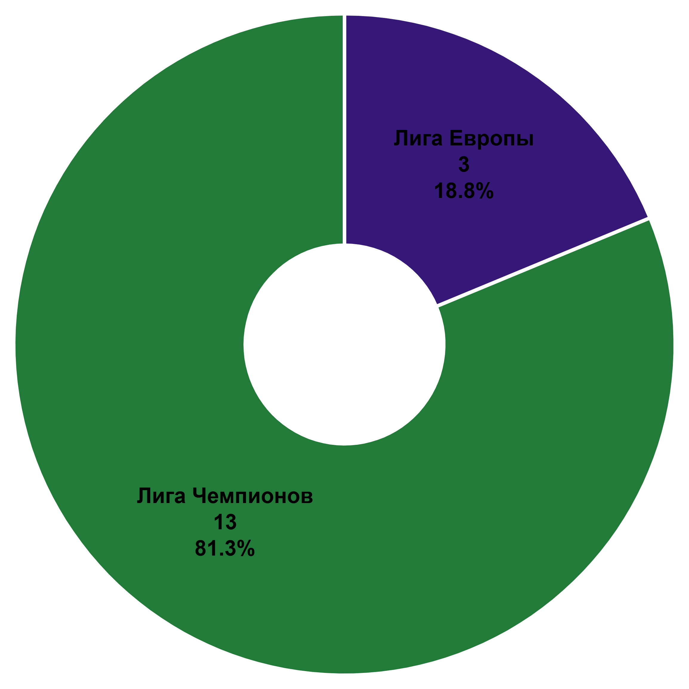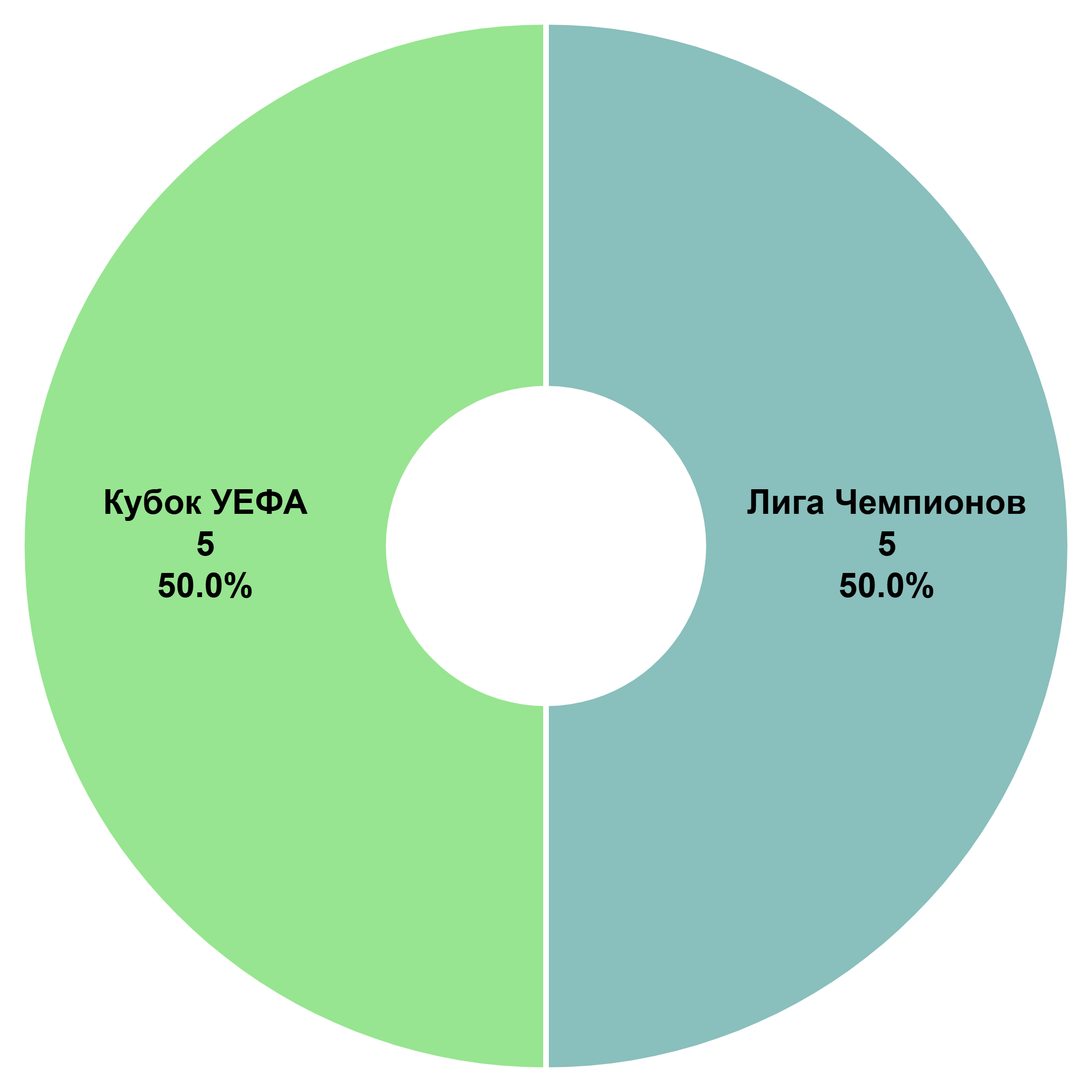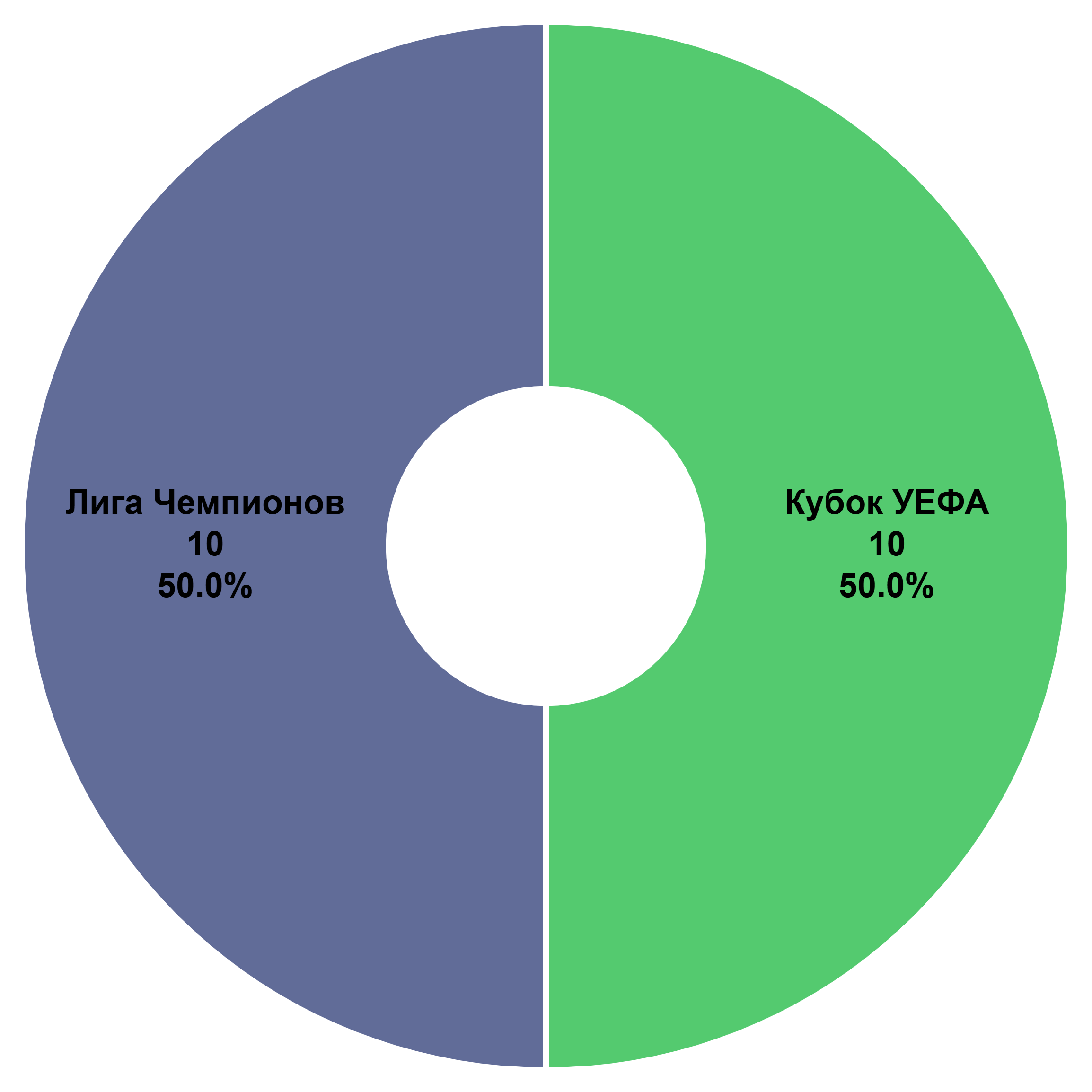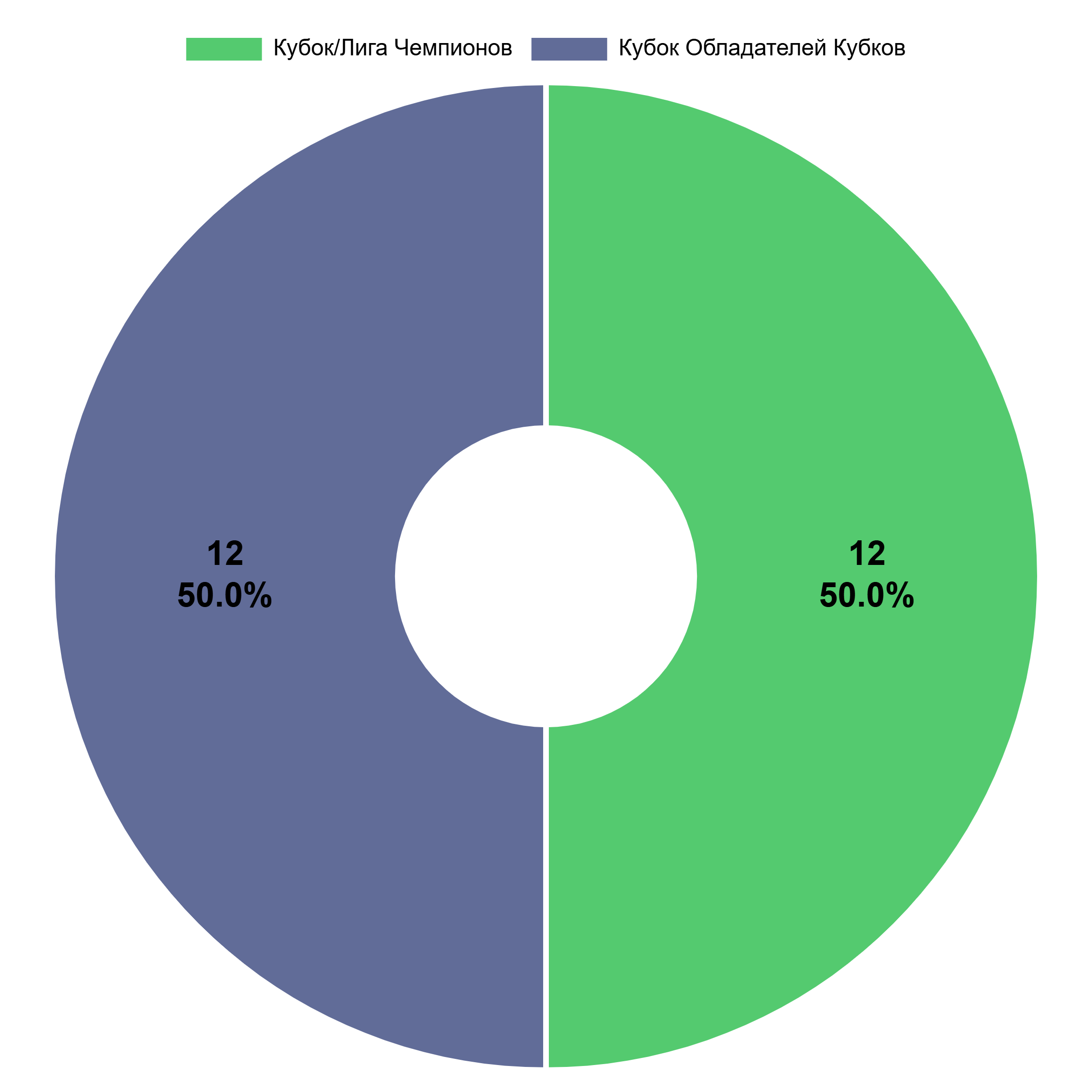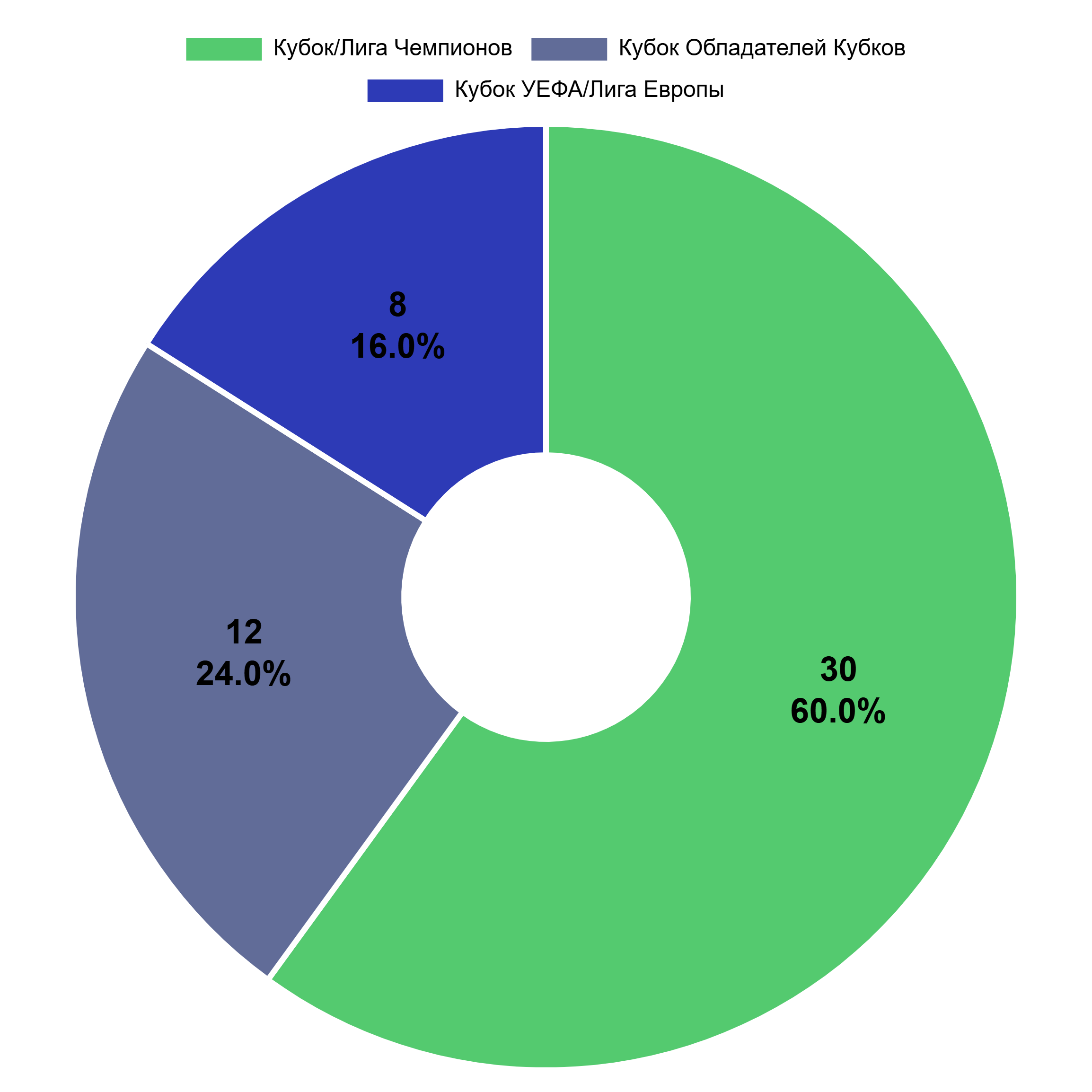 К настоящему моменту победители Кубка/Лиги Чемпионов выиграли турнир 30 раз (60%), Кубка Кубков – 12 раз (24%, и эта доля будет только сокращаться), а Кубка УЕФА и сменившей его Лиги Европы – всего 8 раз за 26 лет (16%).