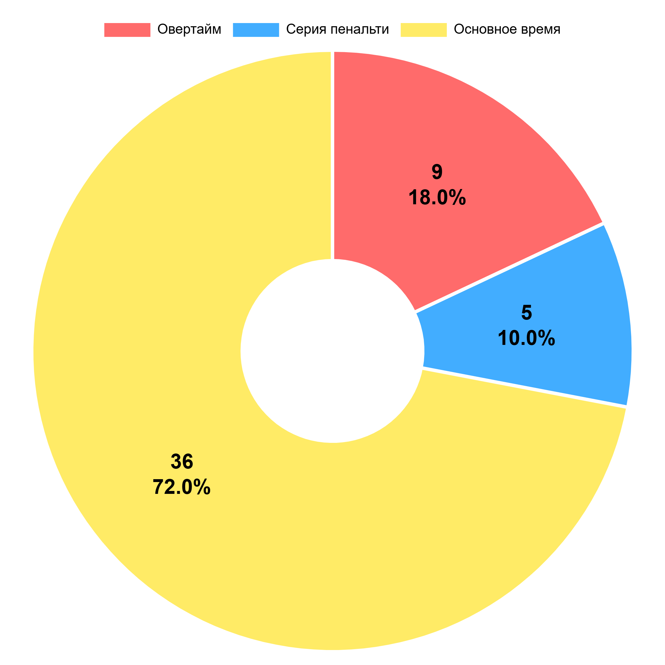Поскольку в турнире должен быть выявлен победитель, в случае ничьей в основное время назначался овертайм, а при необходимости – серия пенальти. Как показывает статистика, 36 из 50 розыгрышей завершились в основное время. Дополнительное понадобилось девять раз, а серия пенальти – только в пяти случаях.