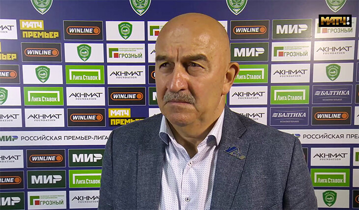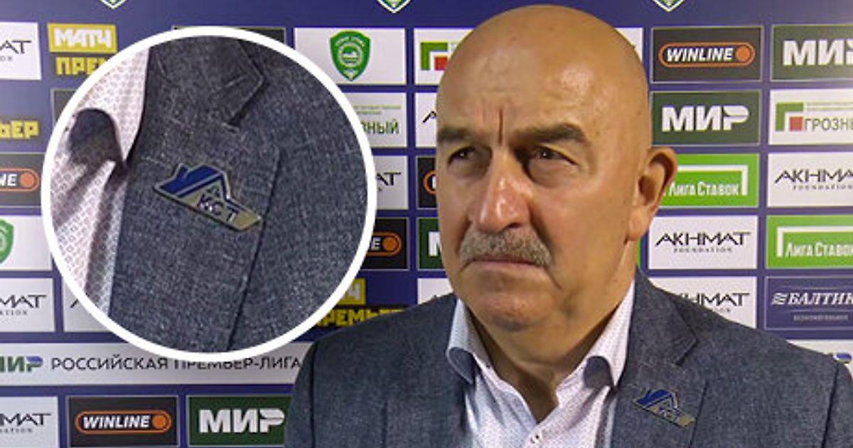 После 3:1 с «Крыльями Советов» главный тренер «Ахмата» Станислав Черчесов пришел на флэш-интервью «Матч ТВ» со значком КСТ на лацкане пиджака.