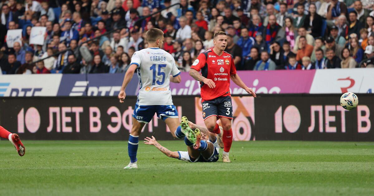 Речь о двух эпизодах во втором тайме. При счете 3:0 в пользу армейцев голкипер бело-голубых Игорь Лещук сбил рвавшегося к воротам Данила Кругового. Между тем, Кирилл Левников расценил этот эпизод как симуляцию и вдобавок показал армейцу желтую карточку. Повтор не оставляет сомнений, что судья ошибся – вратарь «Динамо» допустил нарушение правил и должен был получить красную карточку. VAR также не вмешался в эпизод, это ошибка.