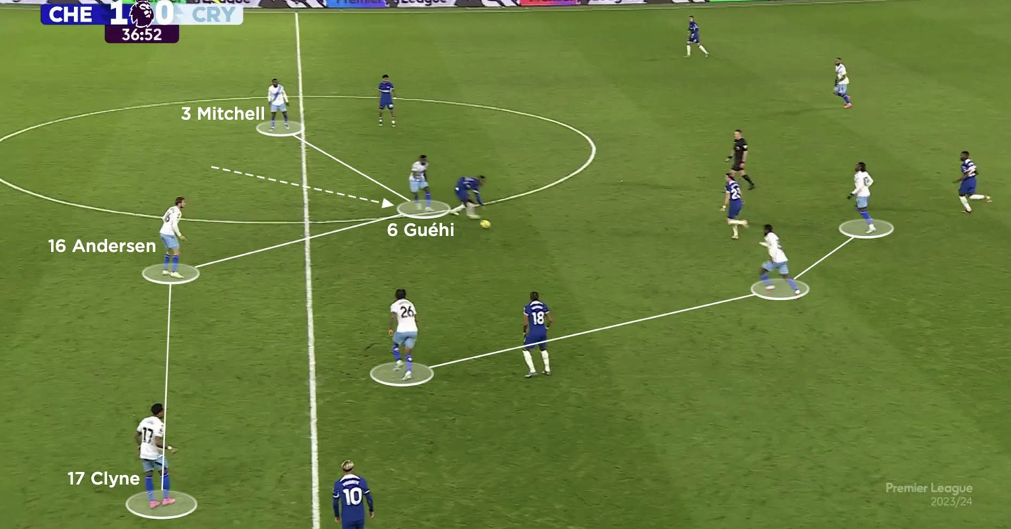 До Гласнера Гехи чаще действовал в схеме 4-2-3-1 или 4-3-3, играя слева в паре с Йоахимом Андерсеном. В такой связке он чаще работал как страхующий, так как Андерсен шел в борьбу на втором этаже. Это раскрывало сильные стороны Гехи — перехваты, блокировки, игра в позиционной обороне.