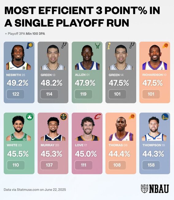 Лучше всего сияние Несмита проявилось в первом матче финала конференции против «Никс», где он, подобно Стефу Карри, реализовал шесть трехочковых попыток кряду в клатче. Впрочем, что мало заметно и менее броско, но в масштабе всего плэй-офф цифры эффективности Аарона оказались куда более эпохальными.