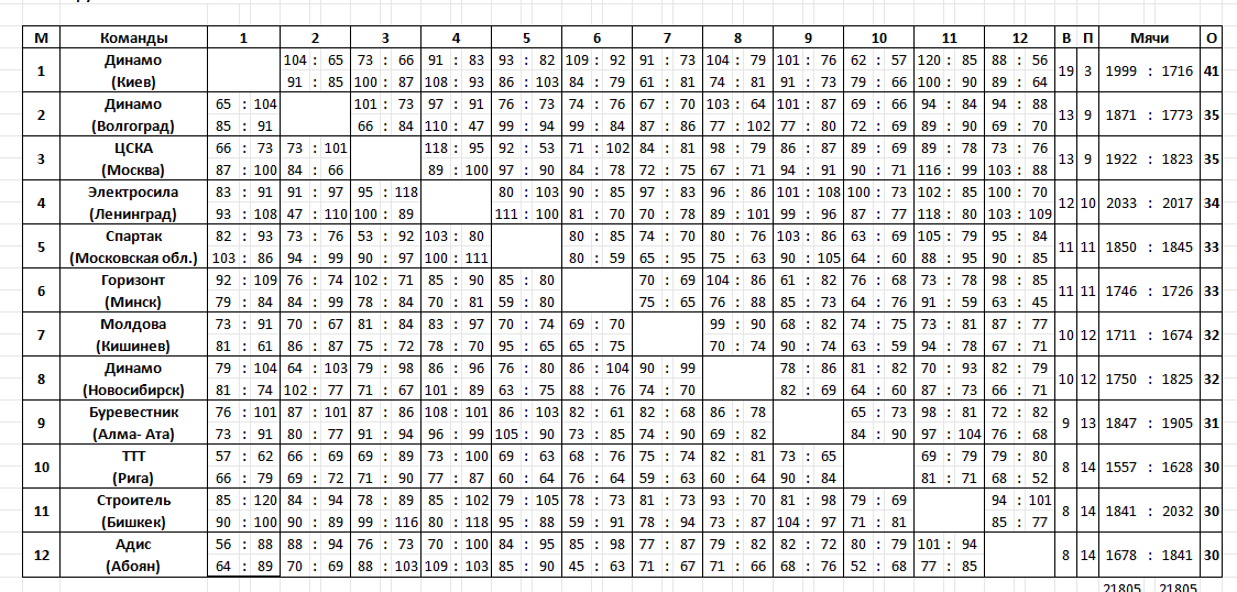 Итоговая классификация LVIII чемпионата СССР. 1. «Динамо» (Киев). 2. ЦСКА (Москва). 3. «Спартак» (Московская обл.) 4. «Динамо» (Волгоград). 5. «Электросила» (Ленинград). 6. «Горизонт» (Минск). 7. «Молдова» (Кишинев). 8. «Динамо» (Новосибирск). 9. «Буревестник». 10. ТТТ (Рига). 11. «Уралмаш» (Свердловск). 12. «Динамо» (Москва). 13. «Строитель» (Фрунзе). 14. «Адис» (Абовян). 15. «Трудовые резервы» (Нижний Новгород). 16. ГТУ. 17. «Красный Аксай» (Ростов-на-Дону). 18. «Университет» (Симферополь). 19. «Спартак» (Пенза). 20. «Львовмашстрой» (Львов). 21. «Сталь» (Днепропетровск). 22. «Медик» (Донецк). 23. «Волна» (Ленинград). 24. «Вольфрам» (Тырныауз)