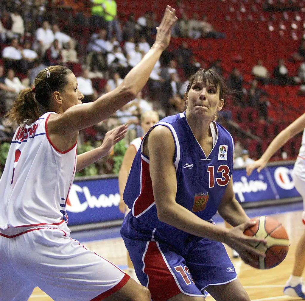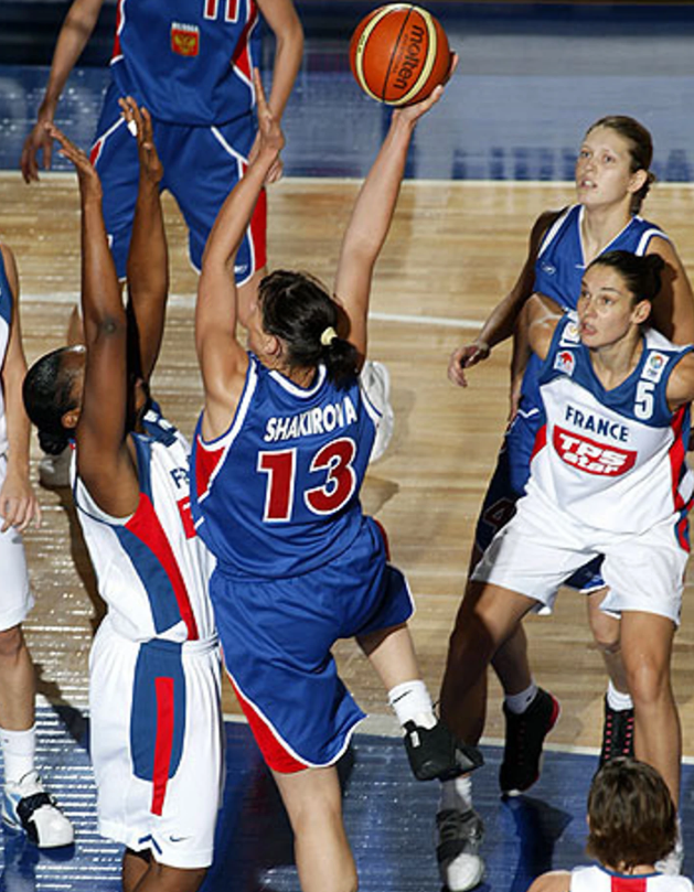 11 сентября 2005. Анкара, Турция. Финальный матч XXX чемпионата Европы Россия — Чехия — 70:72. Элен Шакирова (с мячом) против Евы Немцовой