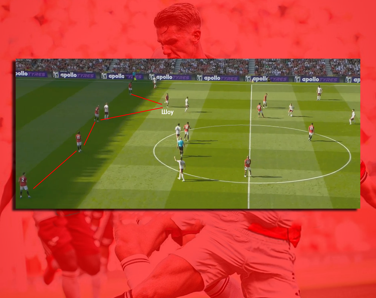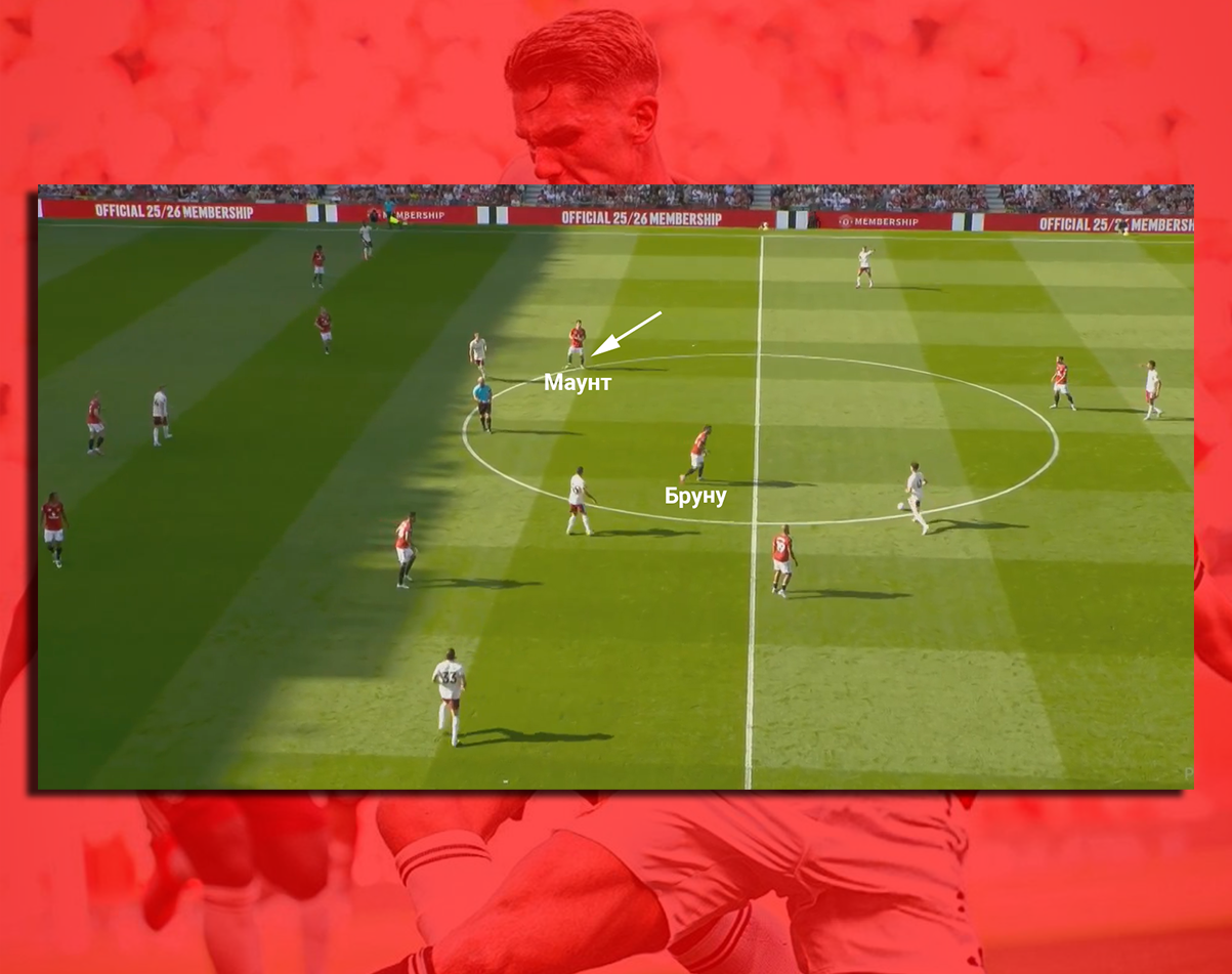 Кстати, в опорной зоне «МЮ» играл Бруну Фернандеш — игрок, мягко говоря не оборонительного типа. А Мейсон Маунт, игрок атакующей тройки, любезно приглядывал за движениями португальца: