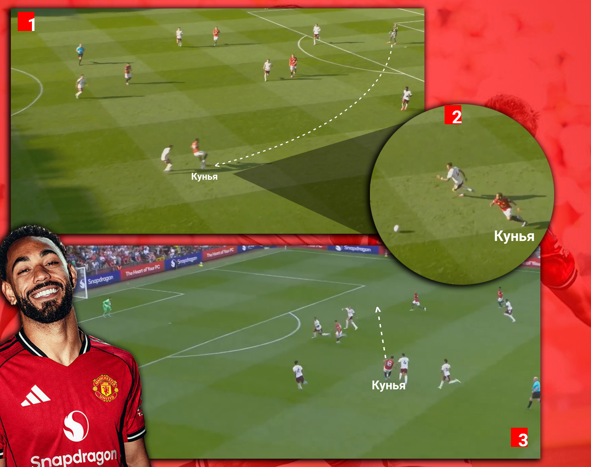 На тренировках Аморим явно часто моделирует эпизоды, в которых нападающие оказываются в ситуации «соперник сзади». В матче с «Арсеналом» это проявилось в цепкости и креативности Куньи, Мбемо и Диалло в подобных моментах.