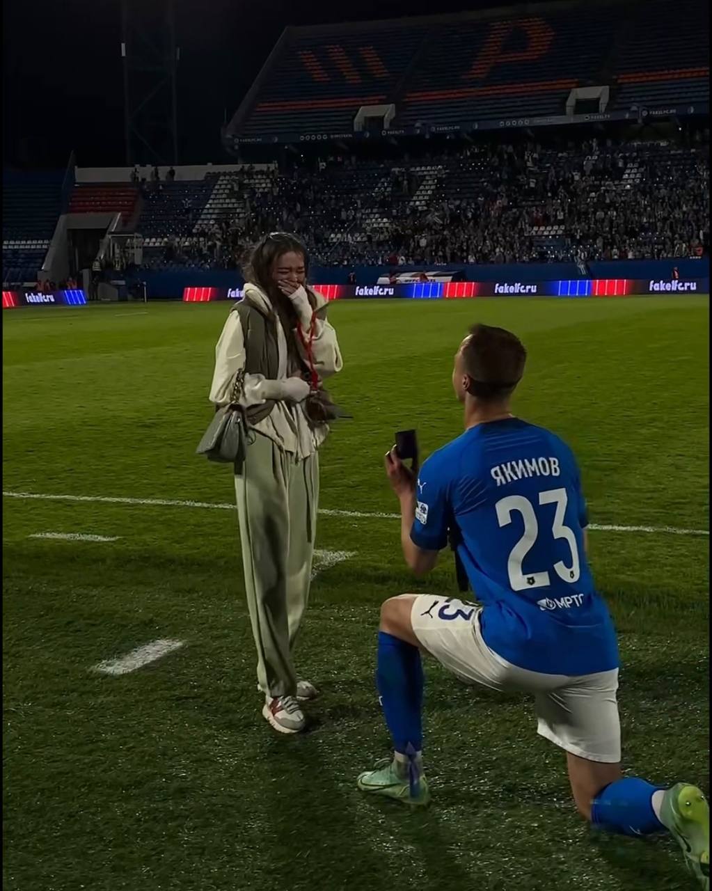 А предложение Вячеслав сделал 14 мая 2023 года – сразу после победы «Факела» над «Пари-НН». Да, на стадионе – прямо на поле и в игровой форме! Поздравляла возлюбленных вся команда и буквально все зрители, пришедшие в тот день на арену!