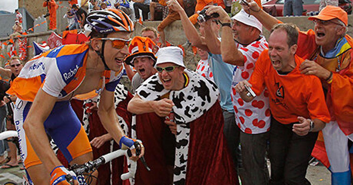 А это нидерландцы поддерживали соотечественника Бауке Моллему в 2011-м – на том этапе он приехал 25-м и завершил Тур 70-м, зато заряда хватило на битву за победу на «Вуэльте» через месяц (правда, в итоге Моллема стал там только третьим),