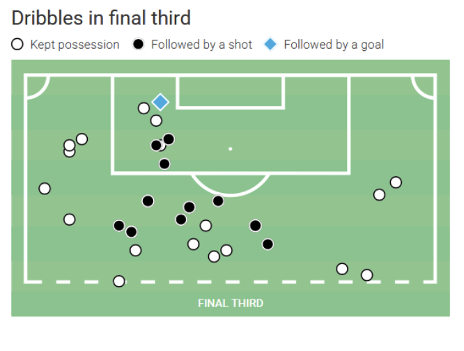 Особенно эффективен в роли «восьмёрки», когда подключается второй волной к атаке. Он чувствует, когда можно забегать в штрафную, и делает это с хорошим таймингом. Отсюда — растущая угроза у ворот соперника и больше ударов с ходу.