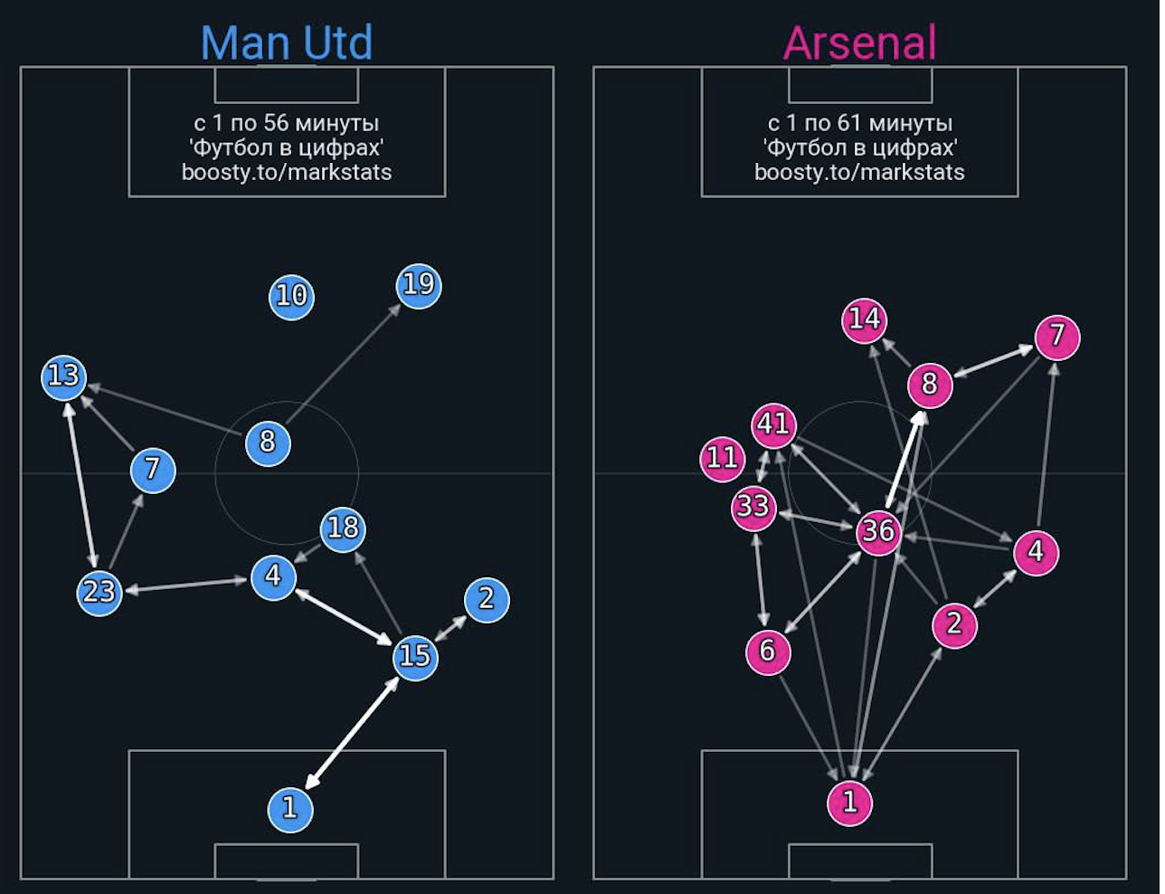 Из-за этого треугольника меньше доходил мяч на левый фланг к Мартинелли, это видно даже по неудачному (с точки зрения построения игры) матчу с «Манчестер Юнайтед» в первом туре АПЛ. Чаще всего мяч до левого вингера доходит вертикальной передачей от левого защитника или опорной зоны. С появлением Эзе эта проблема может решиться.