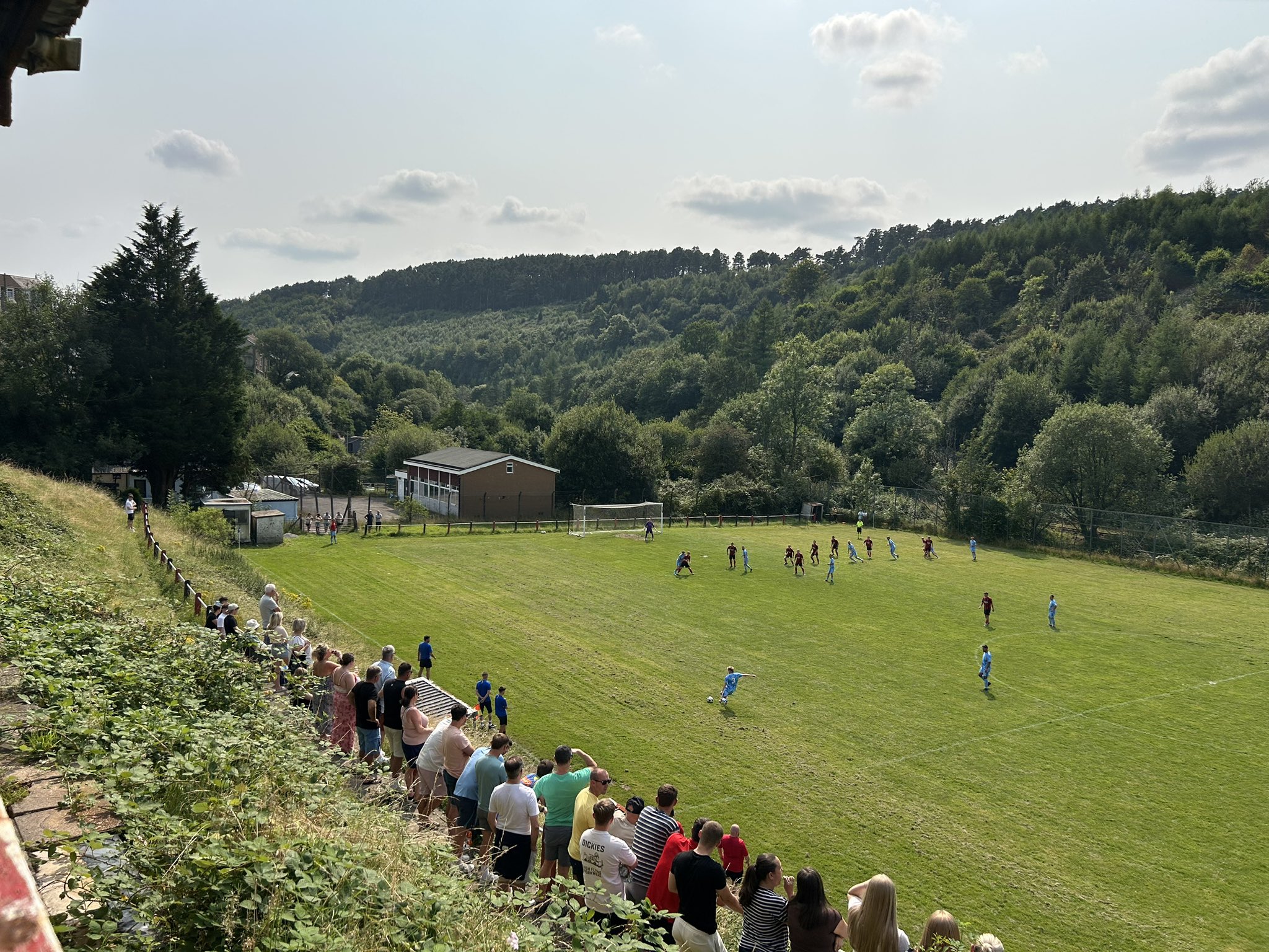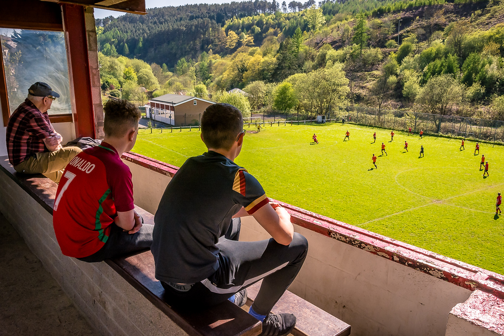 За полем раскинулись холмы долины Гарв. На мой взгляд, это одна из самых красивых полян в британском футболе.